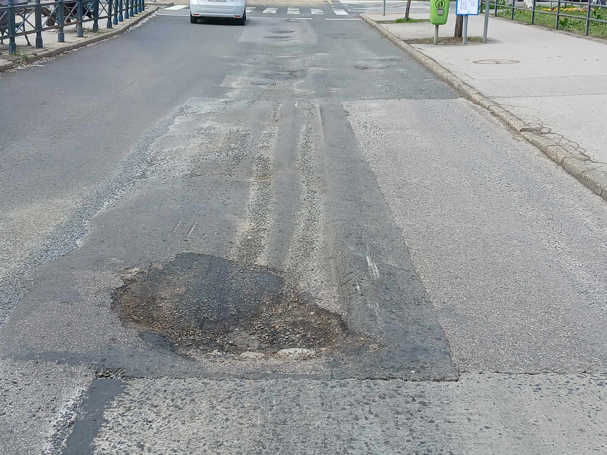 „Jelenleg ilyen állapotban van, normális kátyúzás nem történ csak hidegaszfaltozás, esős idő után ismét kezdődik a bejelentési állapot.”