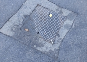 Útban süllyedő csatornafedlap