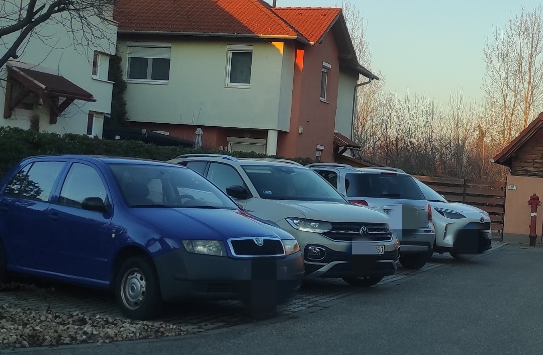 - Parkolónak, szűkös alulméretezett. Félig kilógnak az úttestre vagy a kerítésnek mennek.