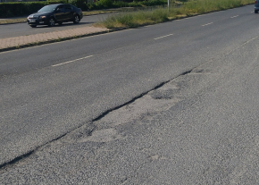 Kérem az illetékest, hogy tömjék be a képen látható kátyúkat! A buszmegálló után, a Móricz felé tartó oldalon vannak!
