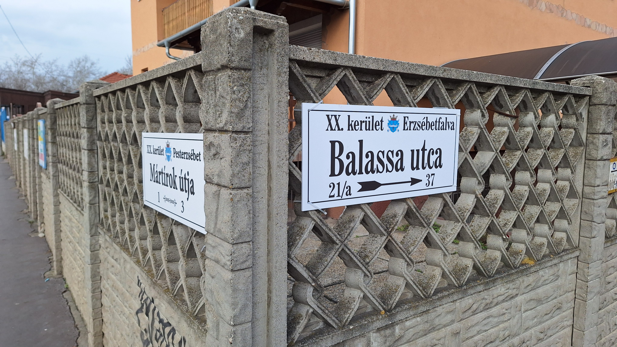 A Mártírok és a Balassa utca sarkán elhalványult az egyik utcatábla.