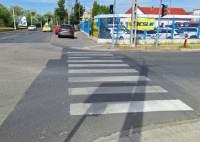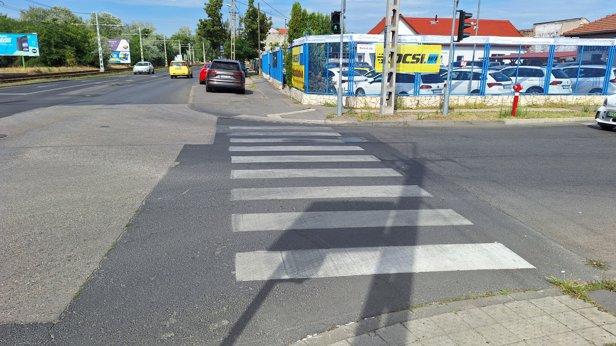 A Mártírok és a Határ út kereszteződésében lévő zebrák erősen le vannak kopva.