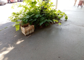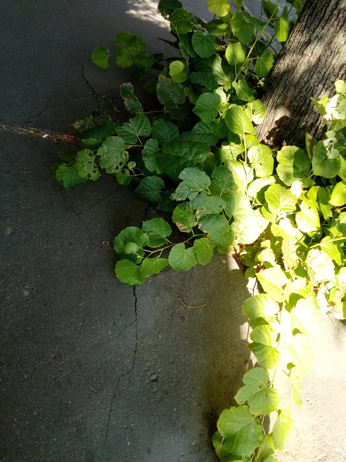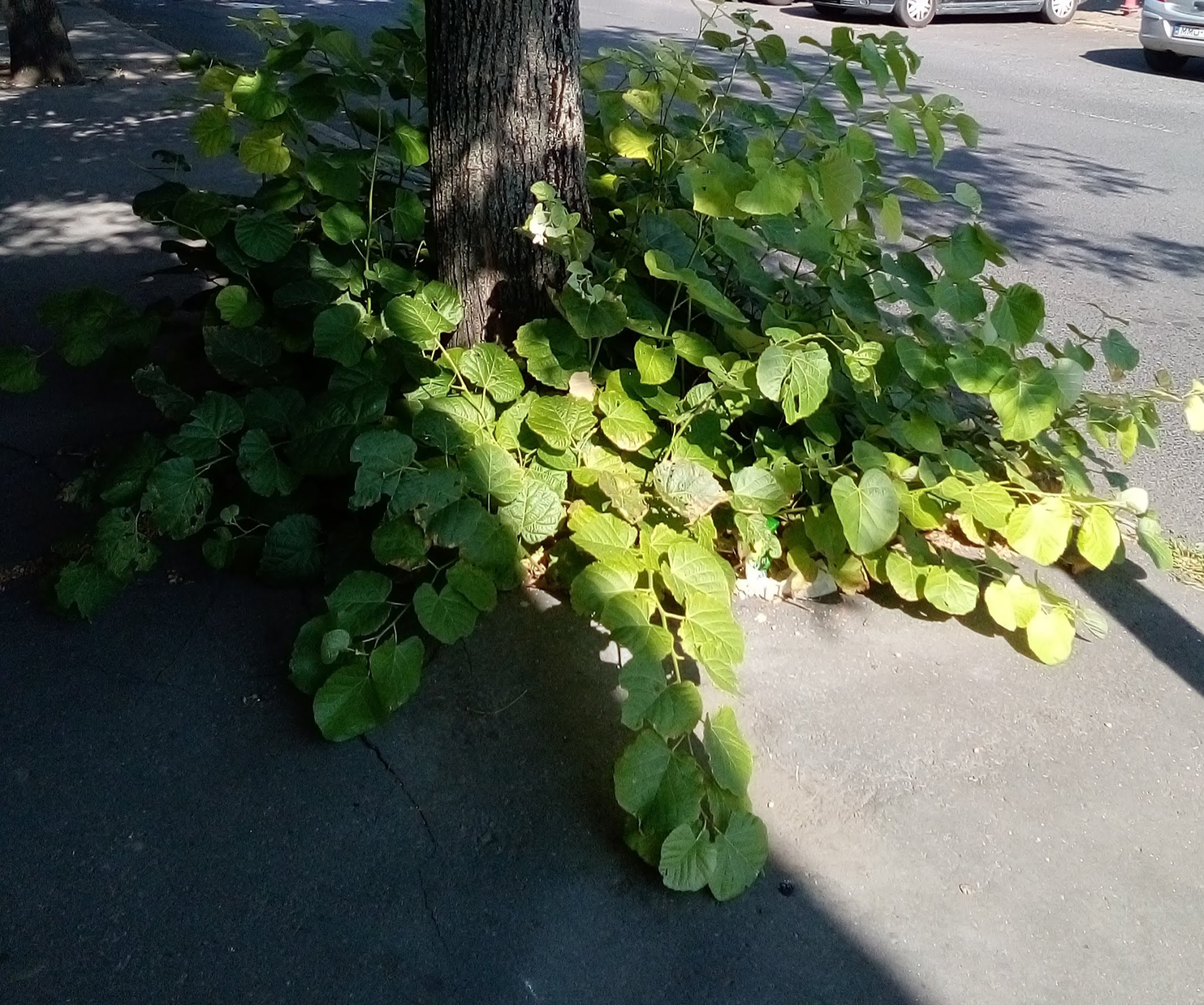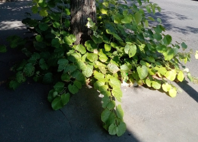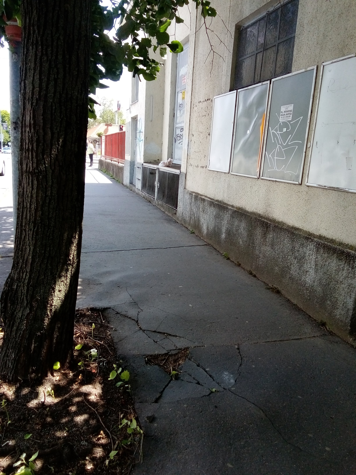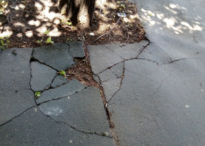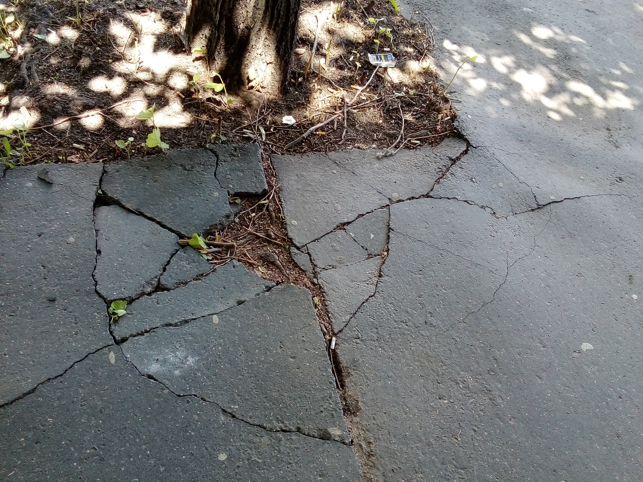XI. kerület Fonyód utca 2 előtti járda a fánál fel van törve a fa körül.