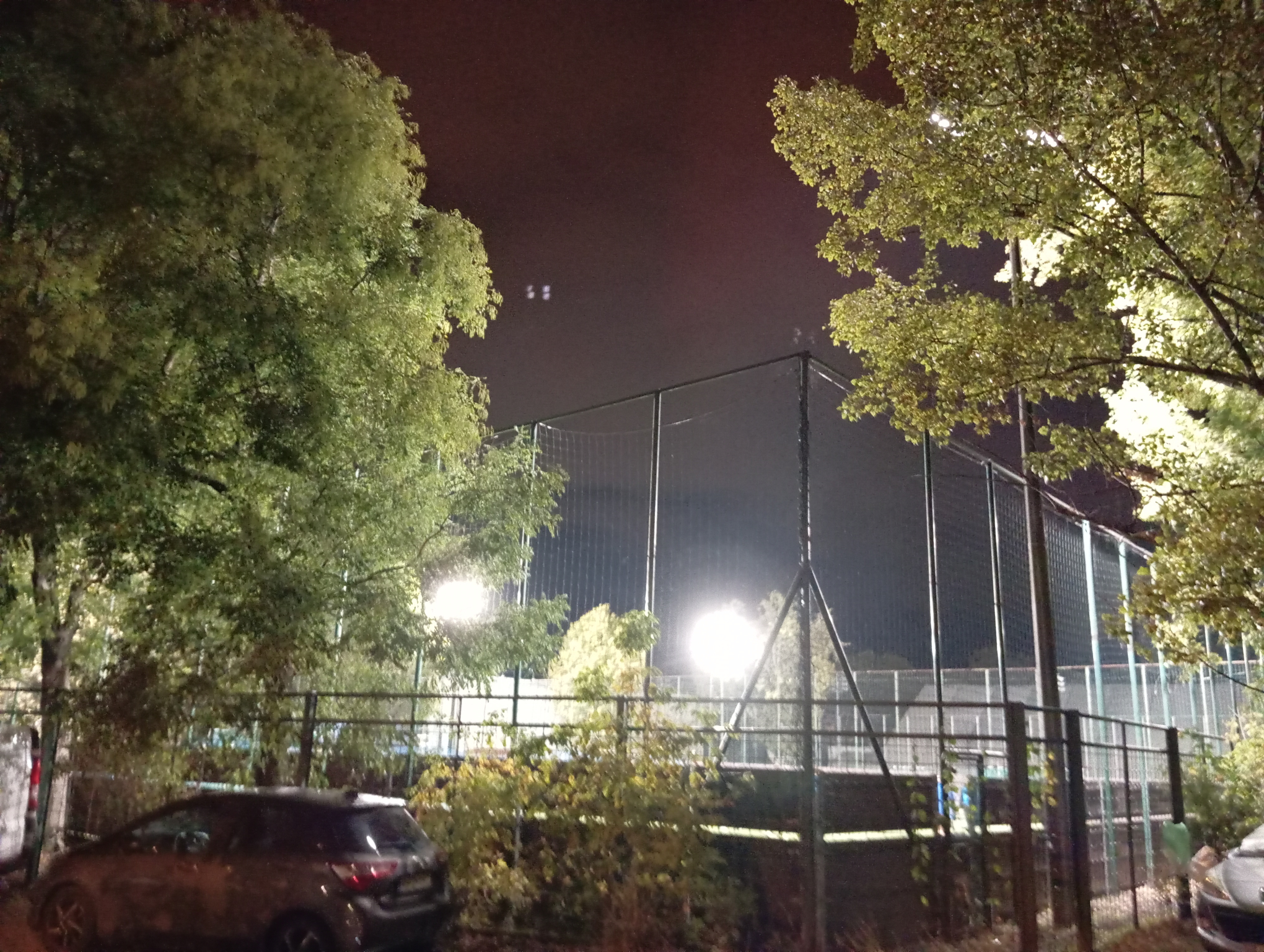 A BME sporttelep(?) focipályáin rosszul van beállítva a pályavilágítás. A fény nem csak a pályát világítja, hanem a környéken mindent. A nem pályára jutó fény zavaró, gyalogosként és autót vezetve is. Ahogy jön a tél és a fák elhullajtják leveleiket ez csak egyre jobban zavaróvá válik. Kérem állítsák be őket, hogy csak lefele világítsanak. Ettől függetlenül nem lenne kevésbé megvilágítva a pálya. Bár szerintem az is túl erősre van állítva. A játékosoknak sem tűnne fel ha akár 50%-al gyengébbre lenne állítva, a szem alkalmazkodik.