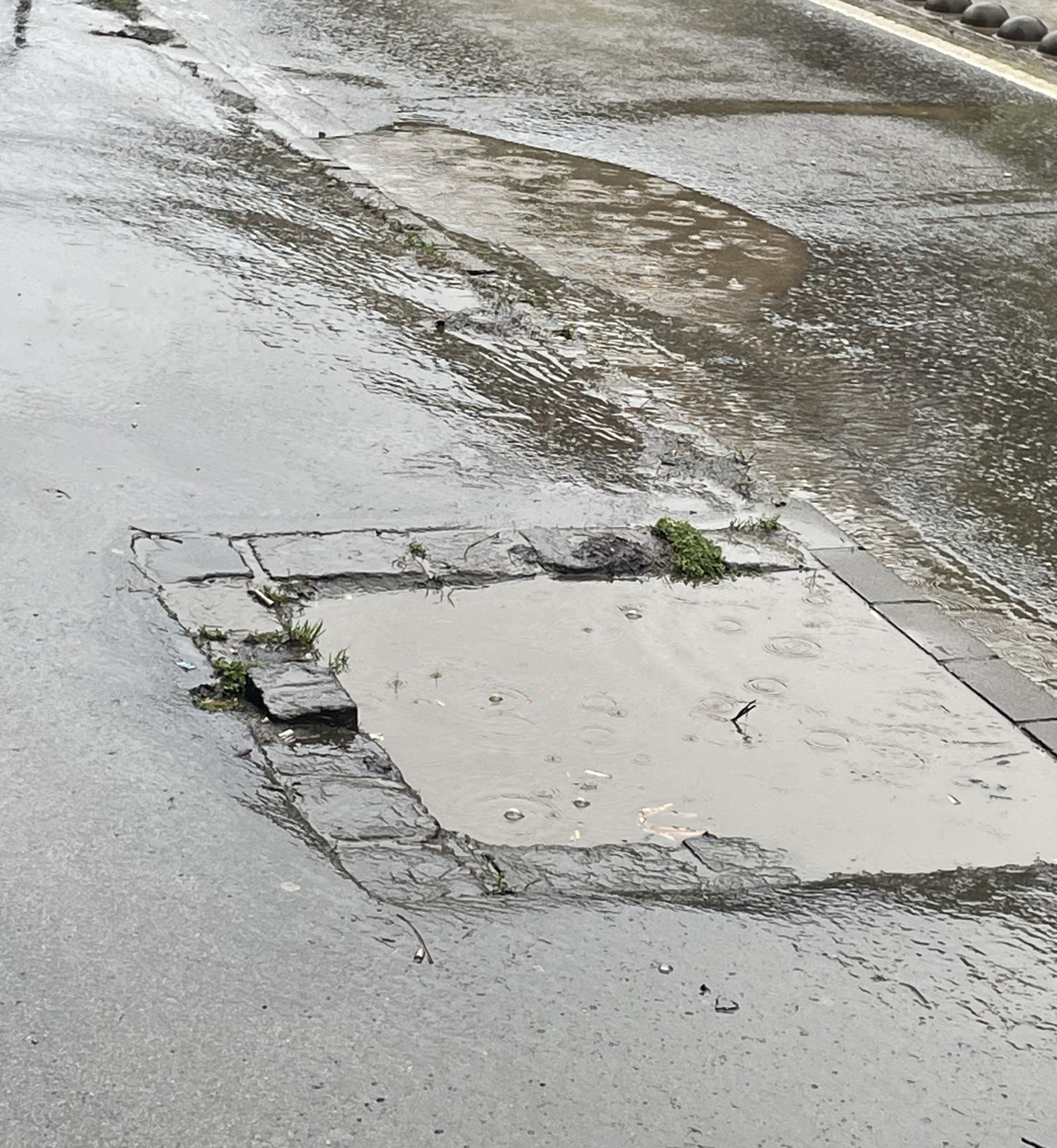 Legyenek szívesek a kátyút kijavítani ,mert esőben folyamatosan vizes leszek nem tudok a járdán rendesen elsétálni. Többen is vizesek lettek . Az autók úgy mennek ,mint vadálatok.
