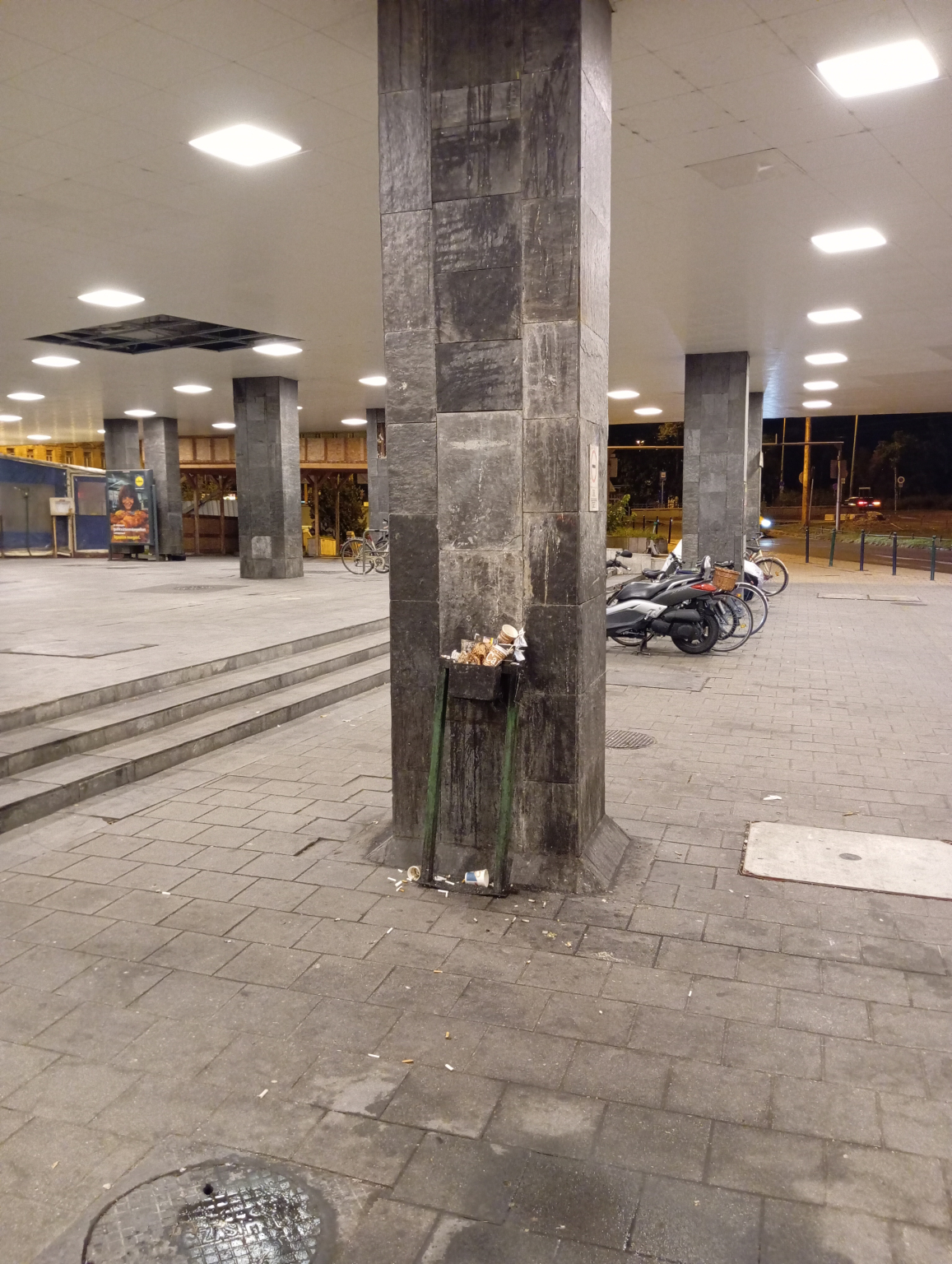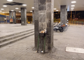 A Déli pályaudvar alatti részen van egy hely, ahol a dohányzás engedélyezett. Valamikor pár éve ott egy kultúrált utcai szemetes volt, az oldalán csikkgyűjtővel. Ma a fotón látható módon néz ki. Mivel a csikkgyűjtő is kicsi, a környezete tele van dobálva csikkel. Szégyen, hogy egy pályaudvar környezete ennyire lepusztult állapotba kerül. Tudom, hogy a MÁV nagy pénzhiánnyal küzd, de egy köztéri fém szemetes kosár 50-150 ezer forint, de ha az ott megkevő tákolmányt megtisztítják, befestik, felcsavarozzák az oszlopra (talán 10 ezer forint), az is sokat javítana az állapotokon.