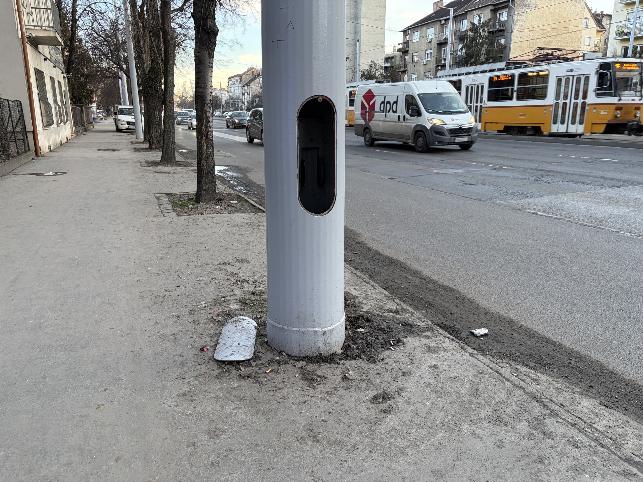 A lámpaoszlop fedele legalább 6 hónapja a földön hever a Hungária krt. 63-65. előtt.