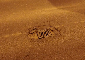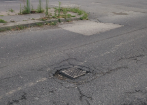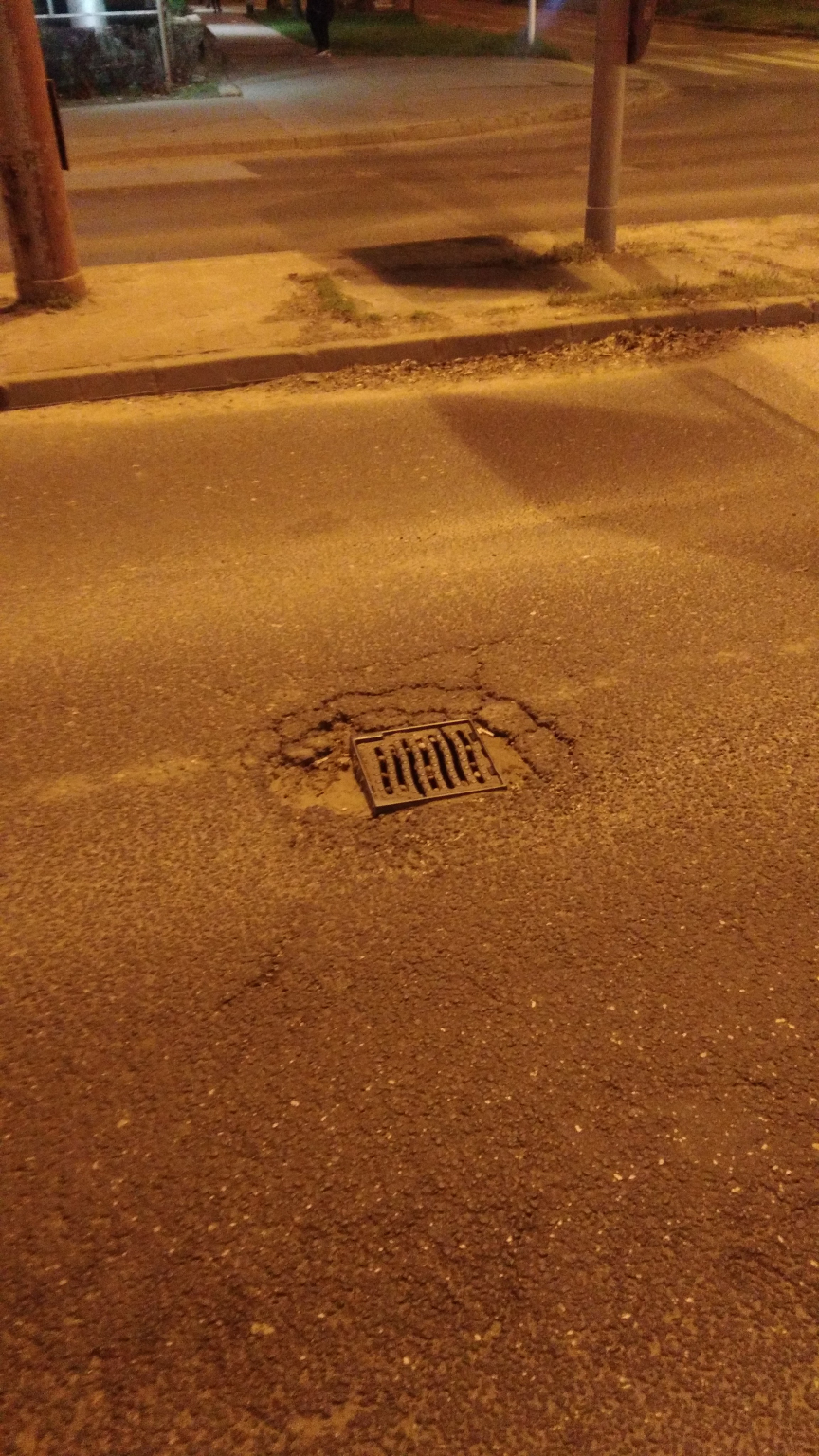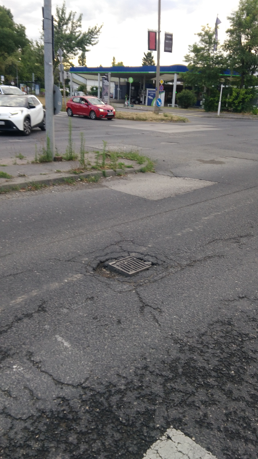 Csatornanyílás körül hiányzó aszfalt