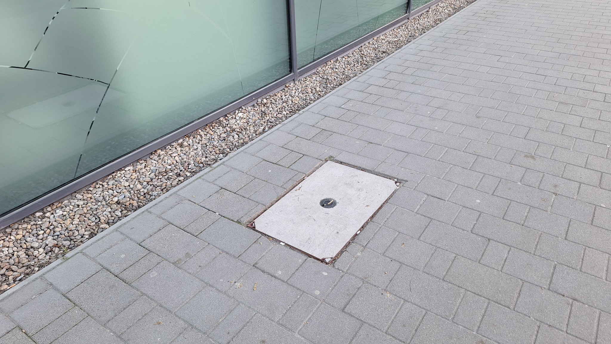 A Dózsa György út 144-148. előtti egyik aknafedél erősen szétporladt állapotban van.