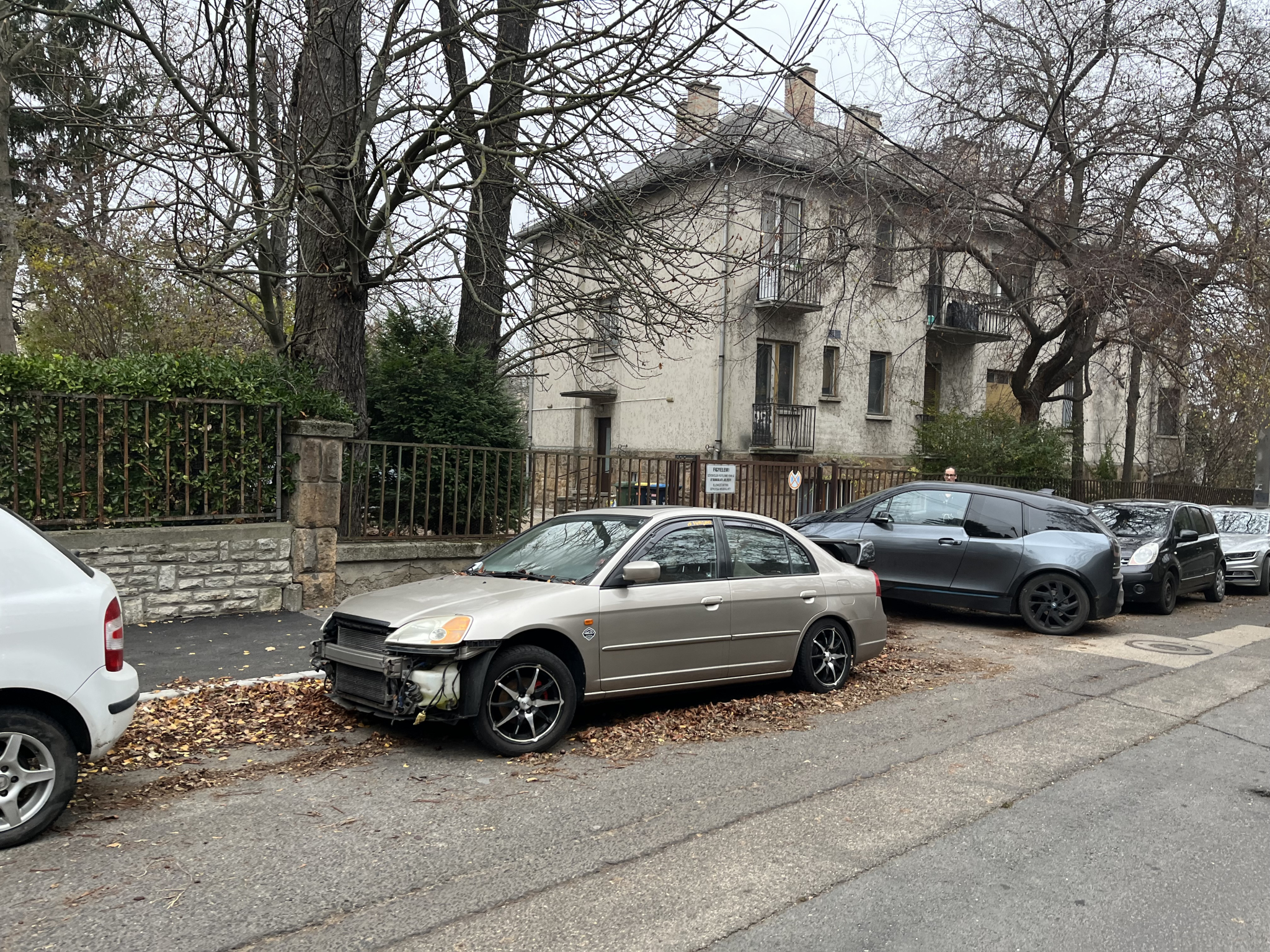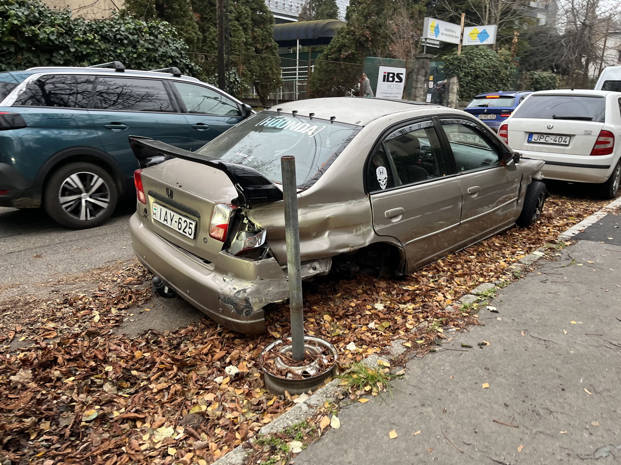 Lejárt műszakival foglalja a parkolóhelyet ez az alaposan összecsukott Honda.