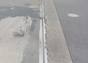 Kérem az illetékest, hogy a képen látható tágulási hézagot rögzíteni szíveskedjenek, mert jelenleg minden jármű áthaladásakor hallani, hogy nincs rögzítve!