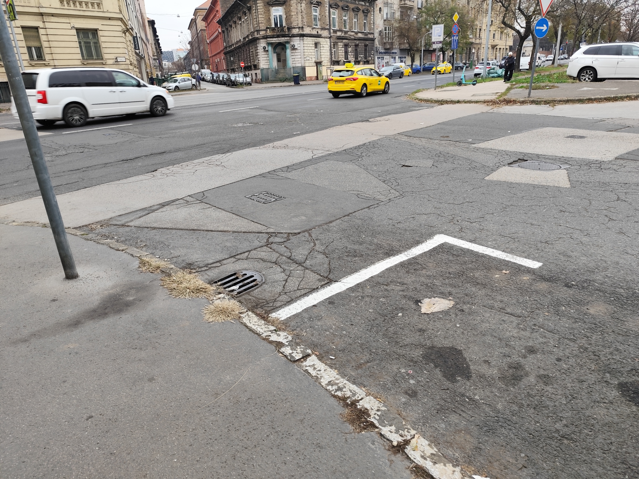 Nem akadálymentes, balesetveszélyes kereszteződés