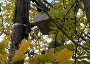 A Kuruclesi út 2 és a Budakeszi út 30 sarkon álló villanyoszlopról hiányzik a kötődoboz takarólemeze.