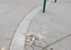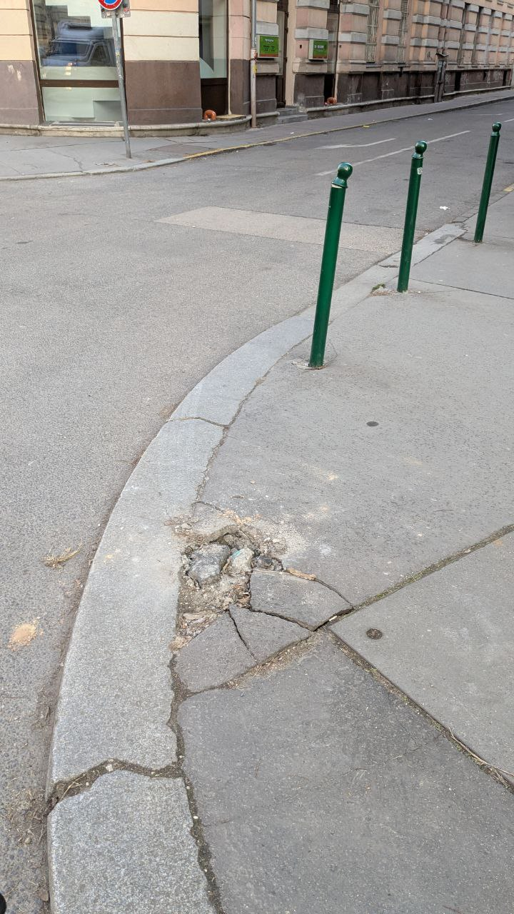 Kidöntött poller. Kérem, javítsák meg vagy távolítsák el őket. Köszönöm.