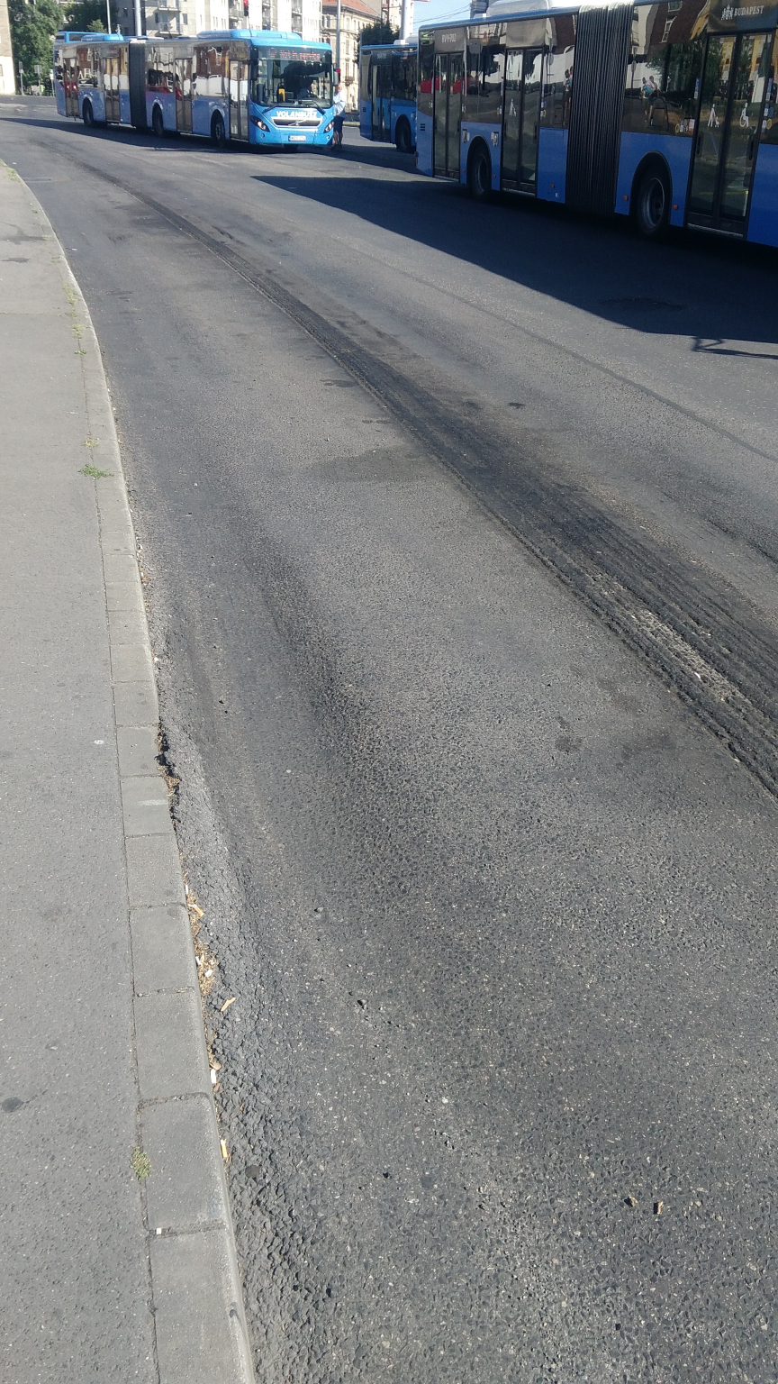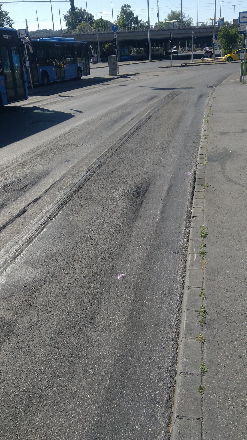 Felgyűrődött aszfalt - Boráros tér, 224-es busz megállója