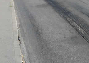 Kérem az illetékest, hogy a képen látható felgyűrődött/kivájódott aszfaltot állítsák helyre!