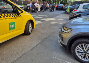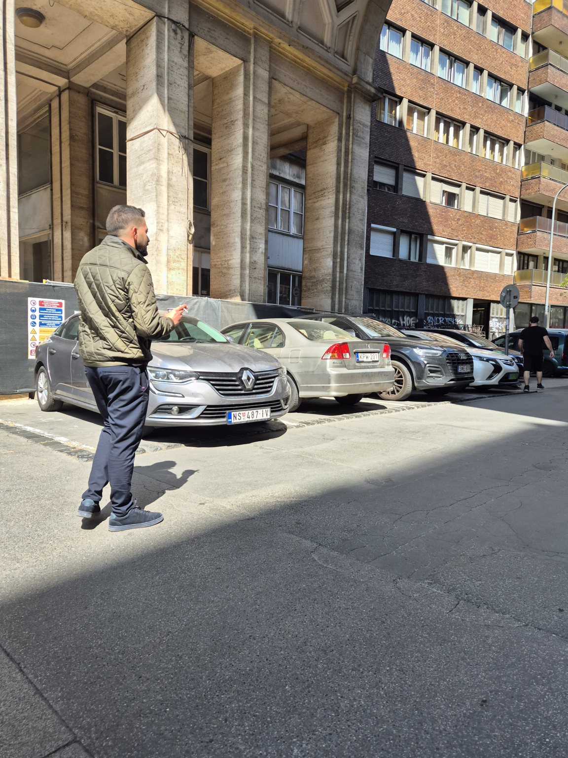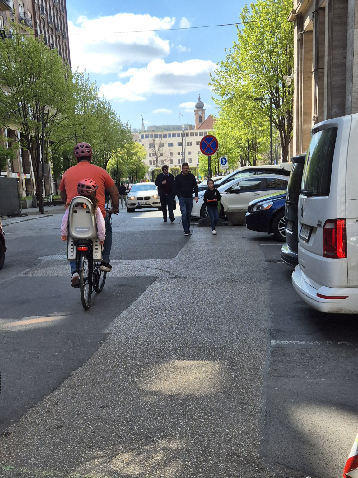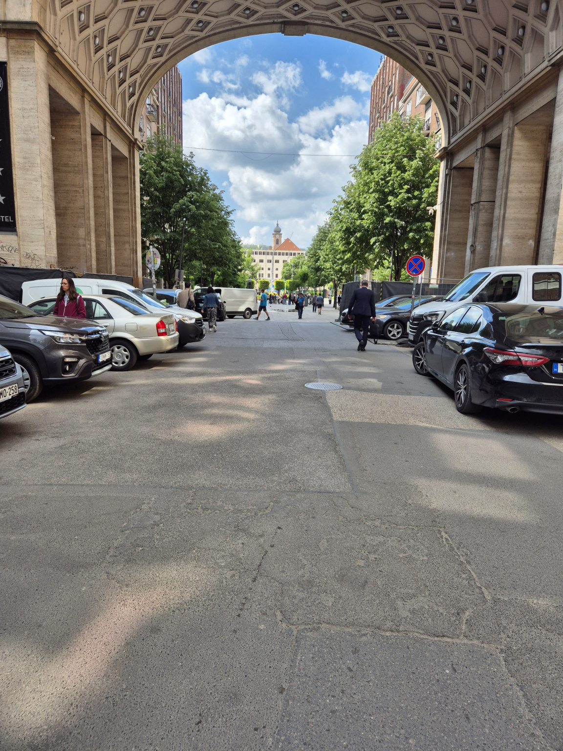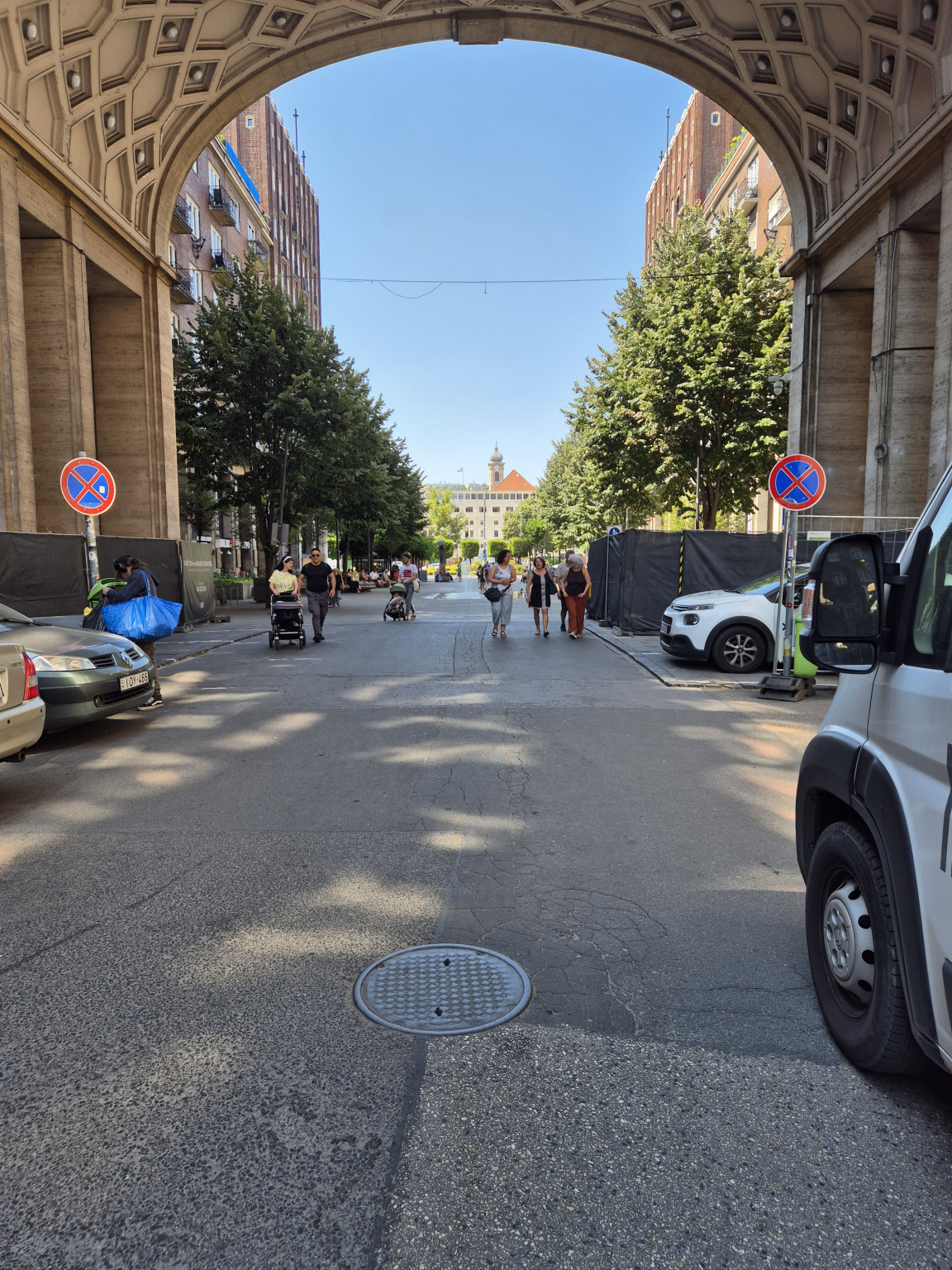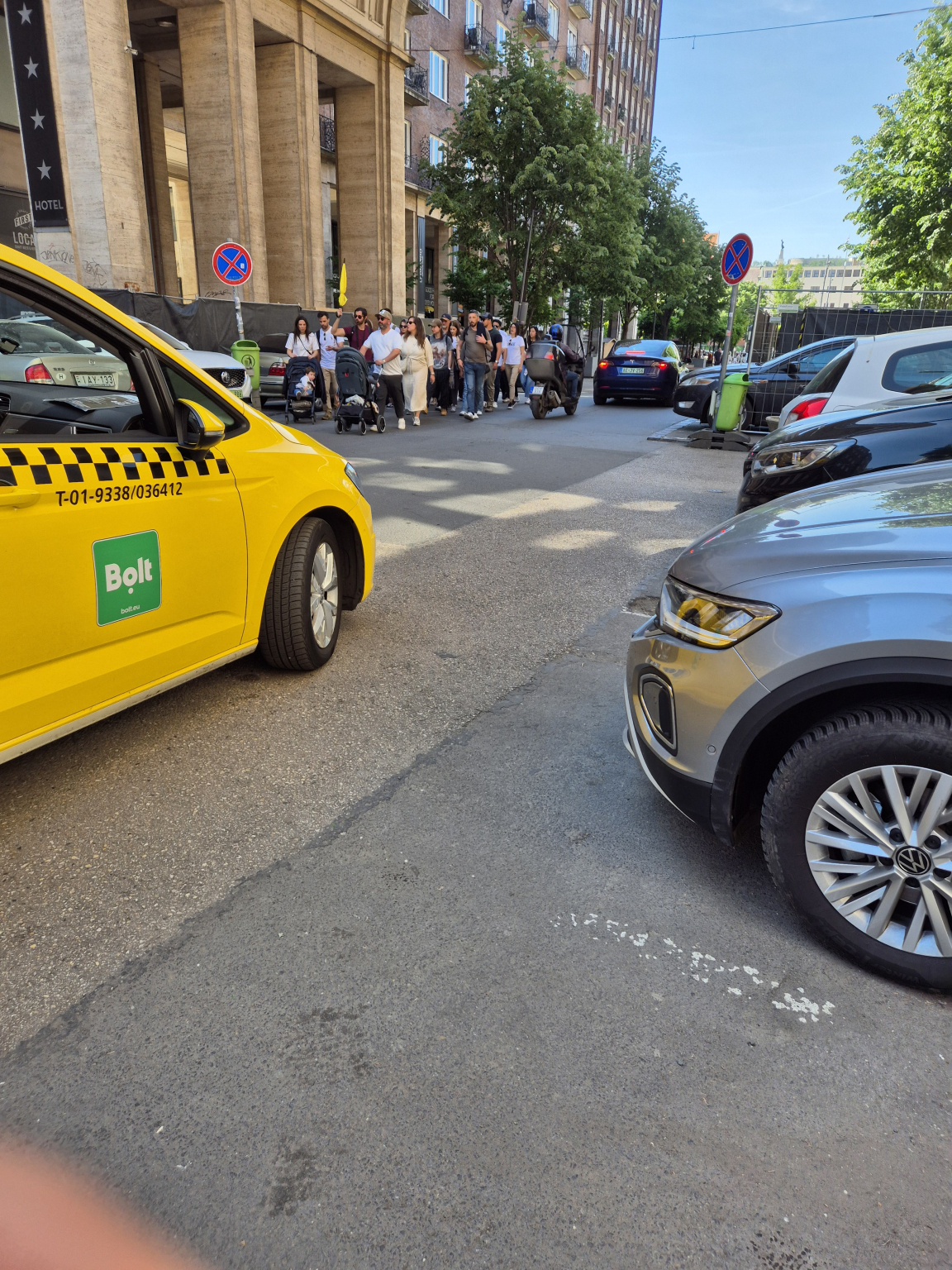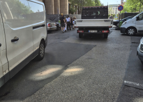 A Madách út és a Madách tér között mindkét oldalon lezárták a járdát ezzel az úttestre kényszerítve a gyalogosokat.