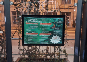 A 2-es villamos Zsil utca megállójában lévő hőségriadóra figyelmeztető plakát kissé furcsán fest így november végén.