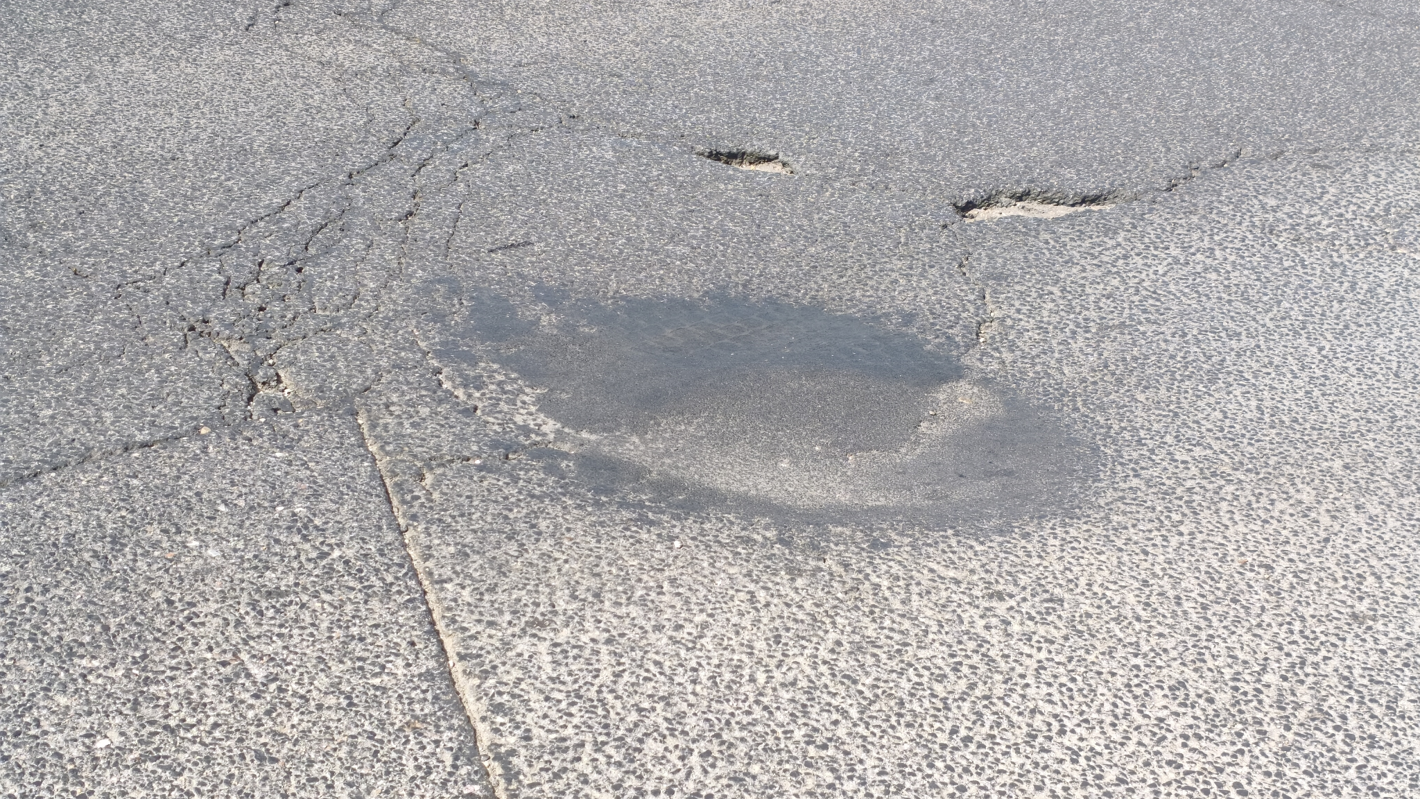 „Ez a gyorsjavítás nem sokat ért, már kb. 10 cm-es a mélyedés, további hiányzó kopóréteg darabok is láthatók, ahogy korábban is megvoltak. Sajnos a mélyedés körül egyre inkább repedezik a burkolat.”