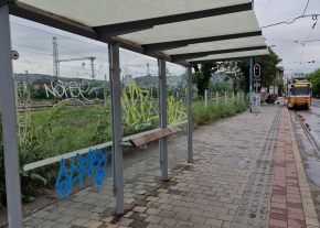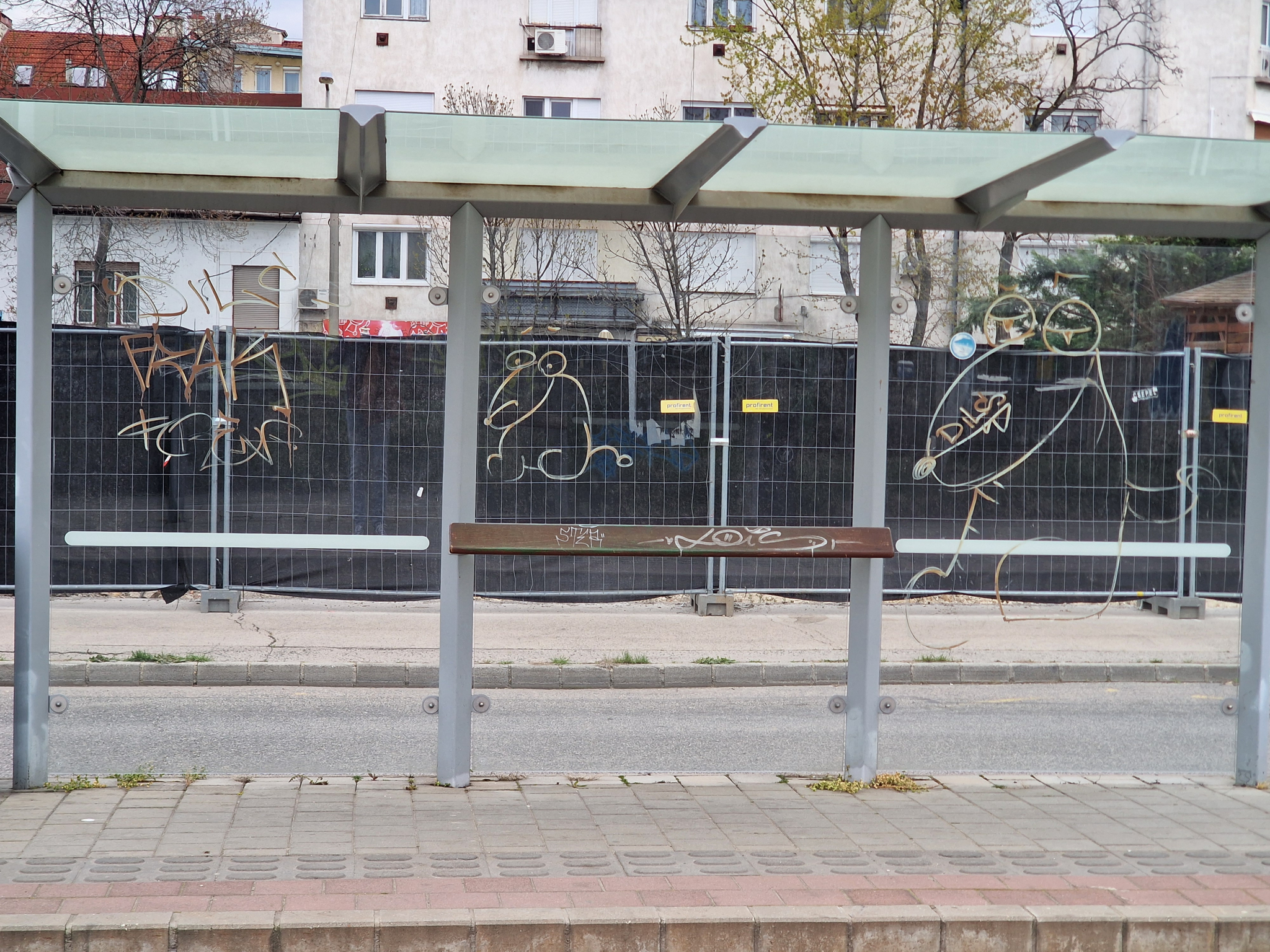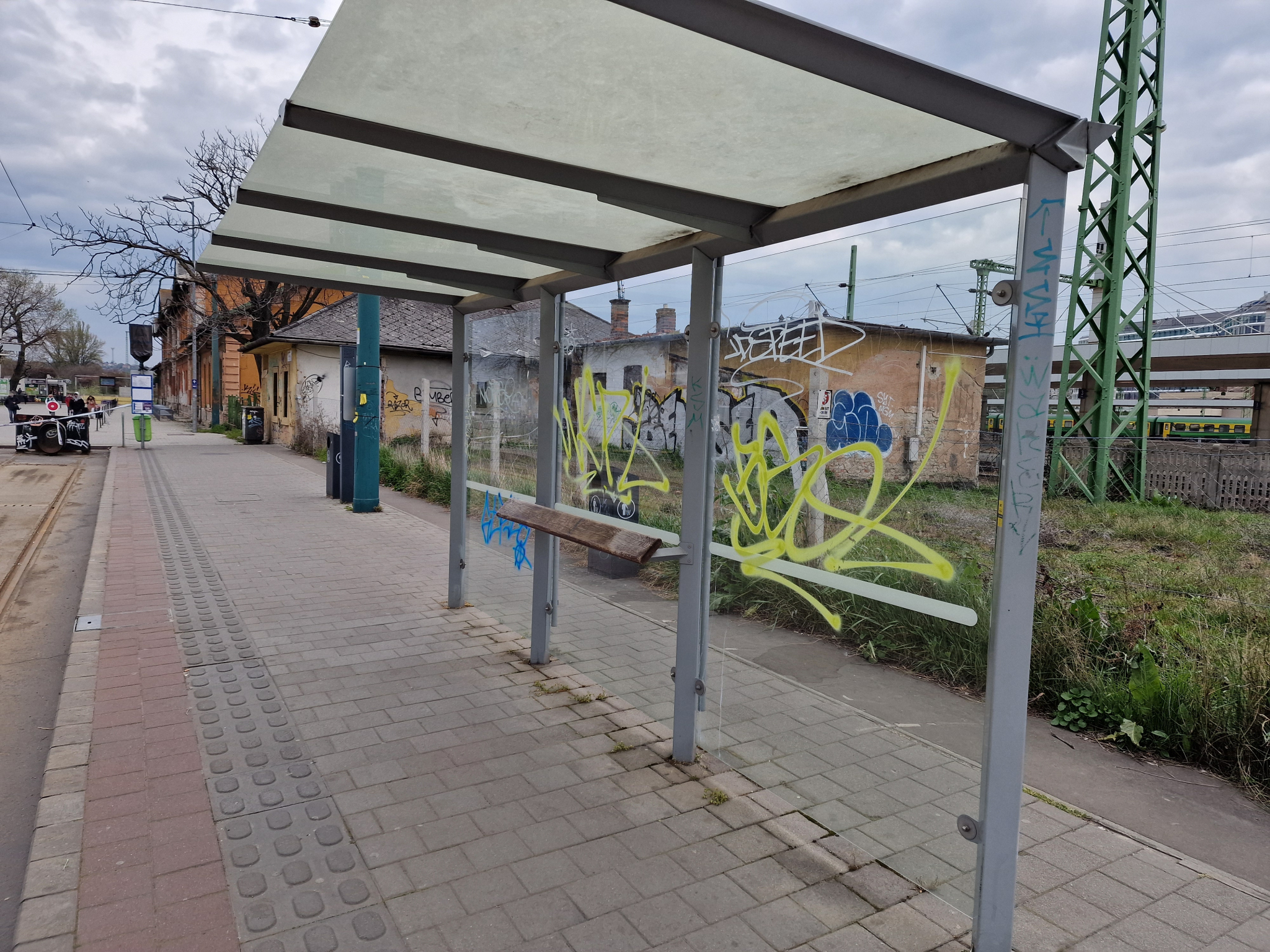 „Továbbra is graffitis, ráadásul a szemközti utasváró szintén firkált, kérem egyúttal azt is tisztítsák meg.”