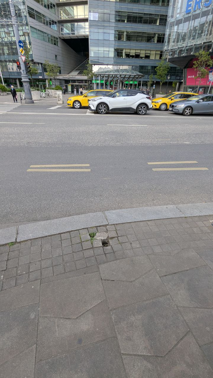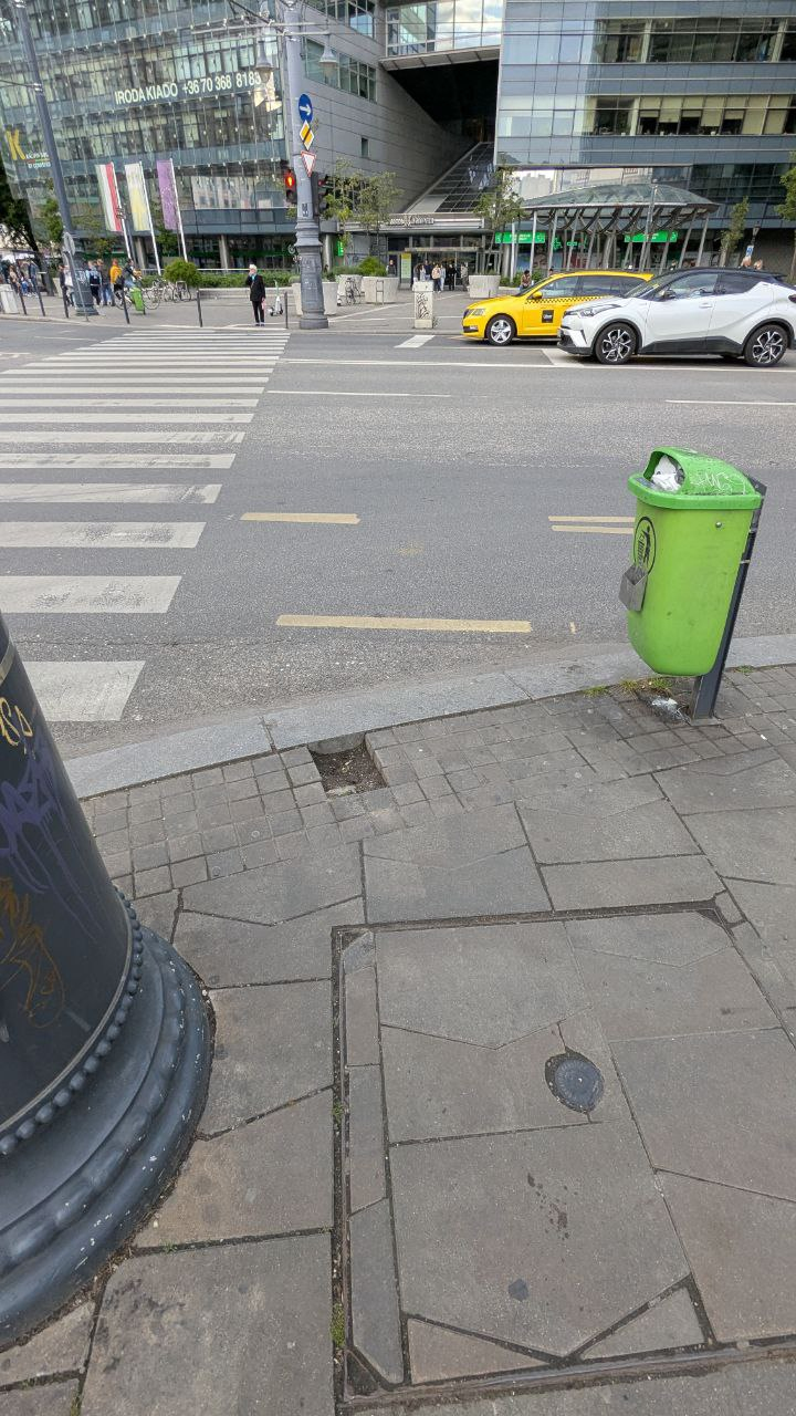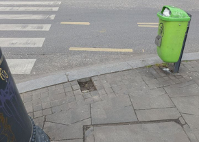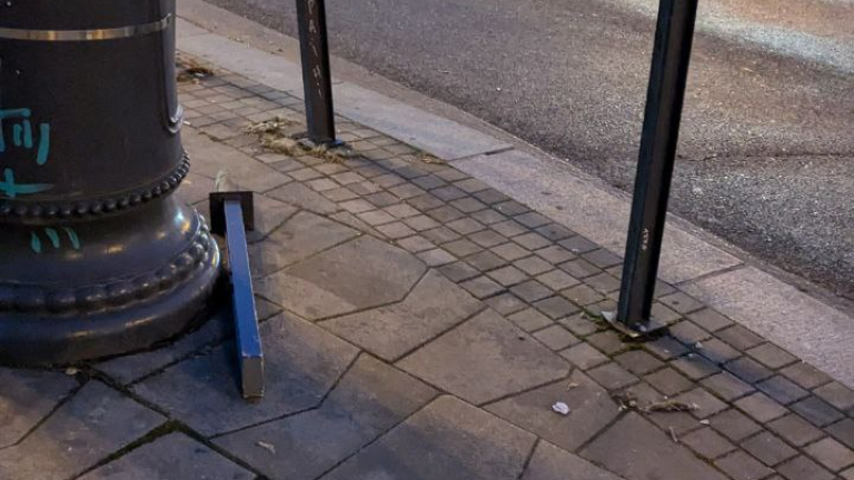 Kidöntött poller. Kérem, javítsák meg vagy távolítsák el őket. Köszönöm.