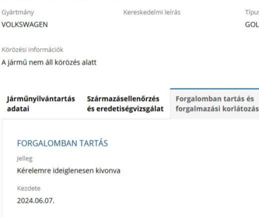 CAM-24*, Volkswagen Golf típusú gépjármű elszállítás ideje és helye: 2025. április 29. napon 9:35 perc, Budapest, XIV. kerület Nagy Lajos király útja 72. (Tárolás: Total-Kár Kft. 1105 Budape...