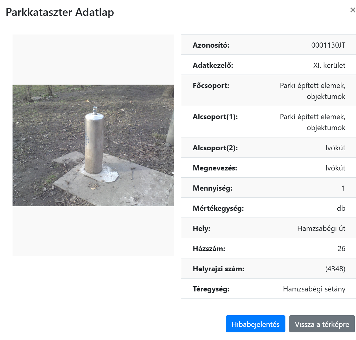 A Hamzsabégi sétányon lévő ivókút csapja elromlott (nyomógomb kiugrott a helyéből) és folyamatosan folyik a víz a csapból.