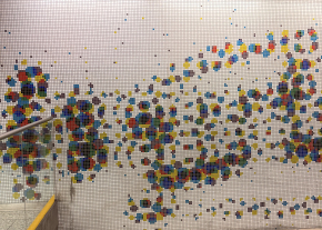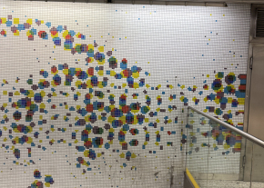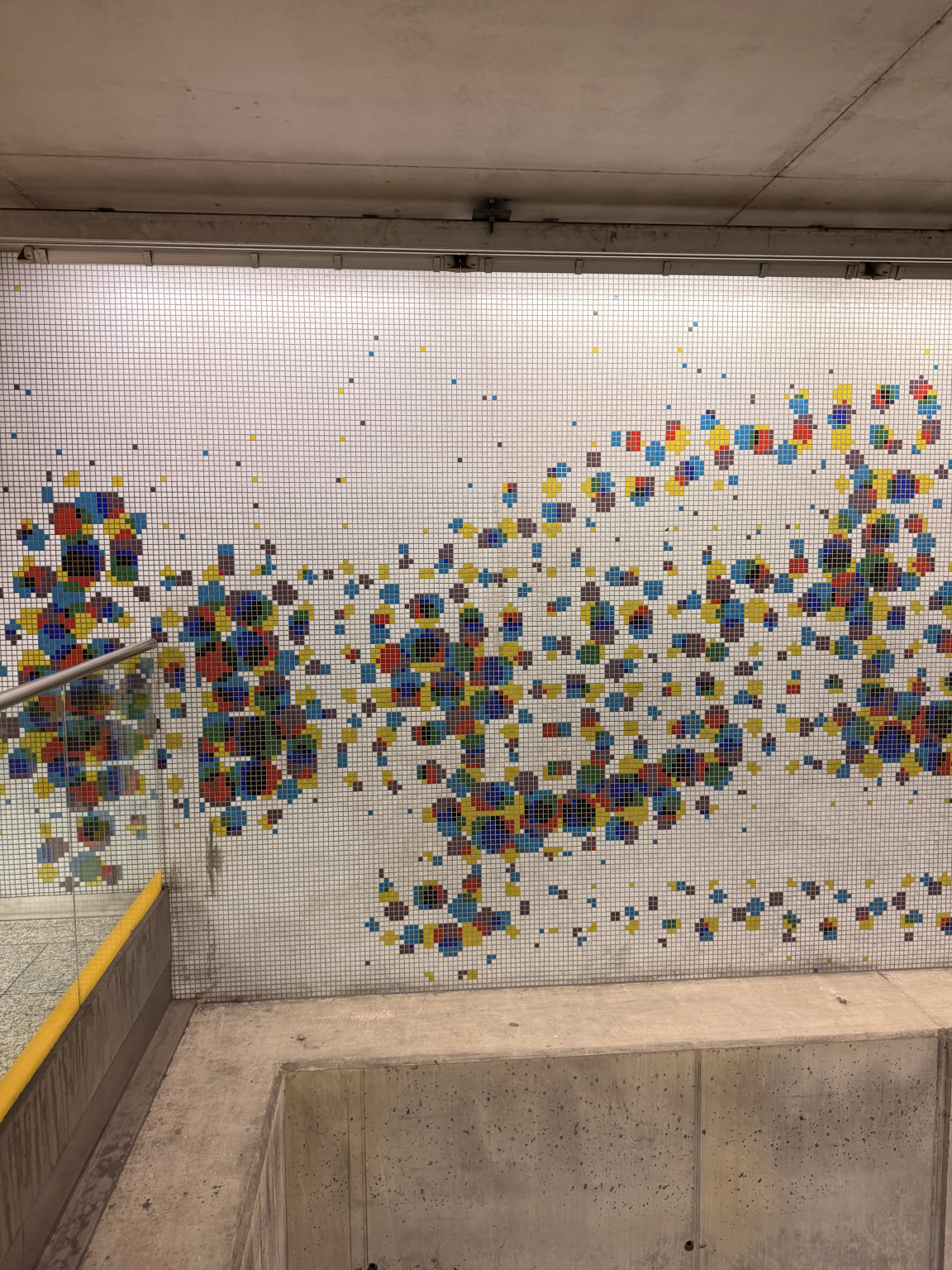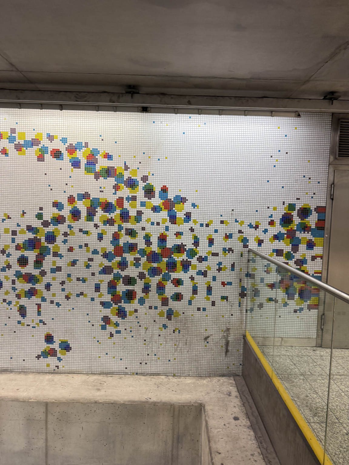 A Kálvin téri M4 metró lejáratánál, a mozgólépcsőnél jól látható, hogy meddig van csak letakarítva a burkolat. Jól körülhatárolható meddig takarítják és honnan nem.