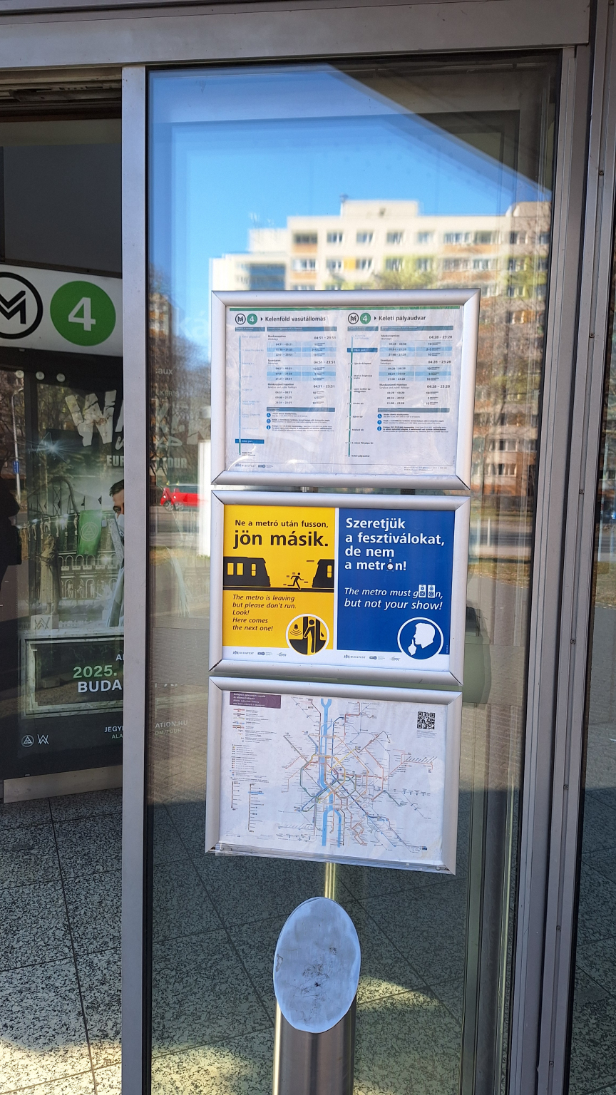 A Bikás park metróállomás akadálymentesített bejáratánál lévő tájékoztató táblák teljesen megsárgultak.