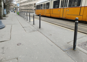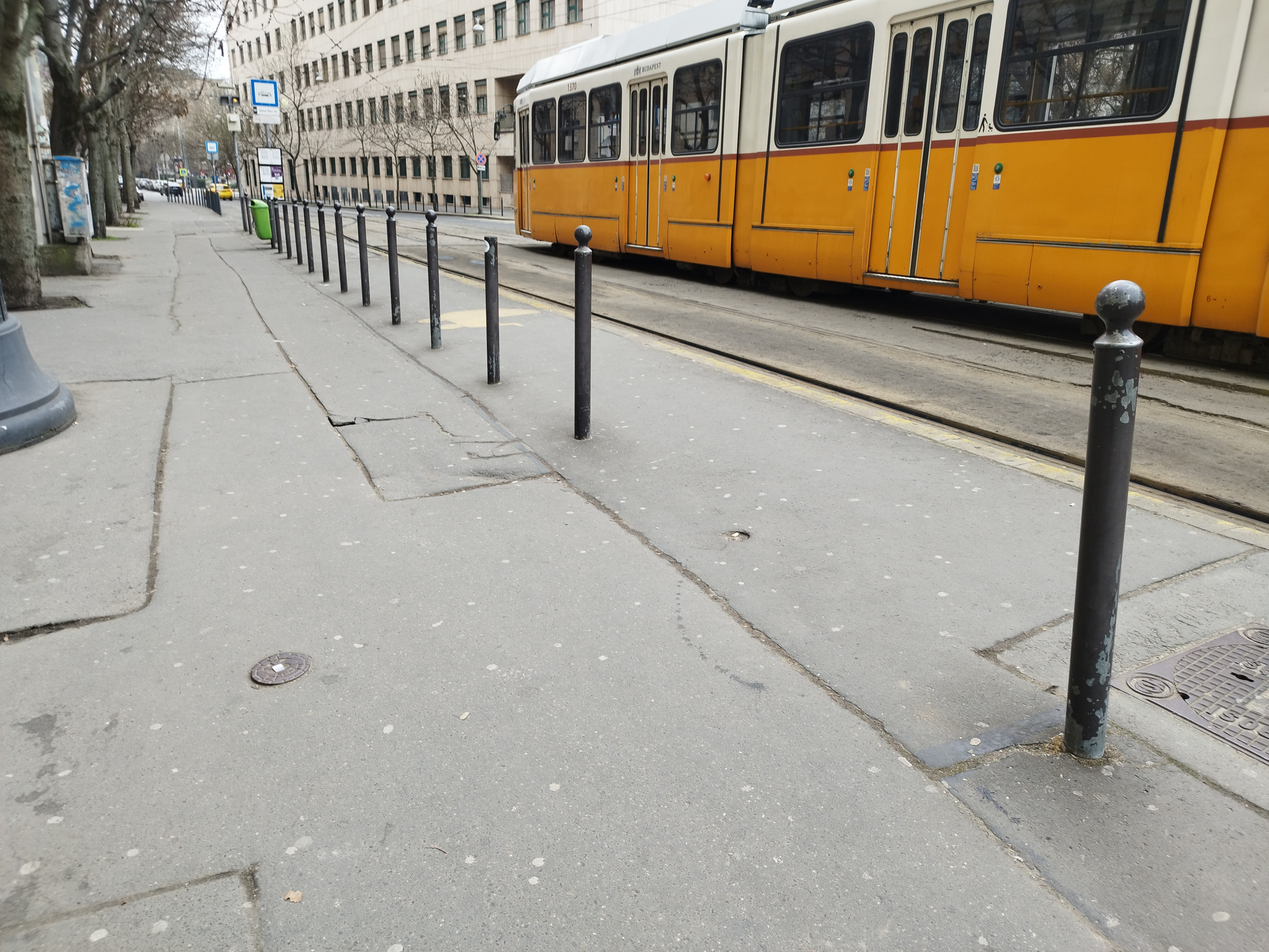 Hiányzó poller ( Jászai , 2-es villamos megállójában )