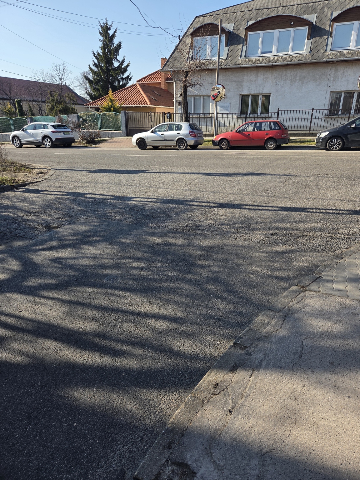 Töredezett és megsüllyedt útburkolat