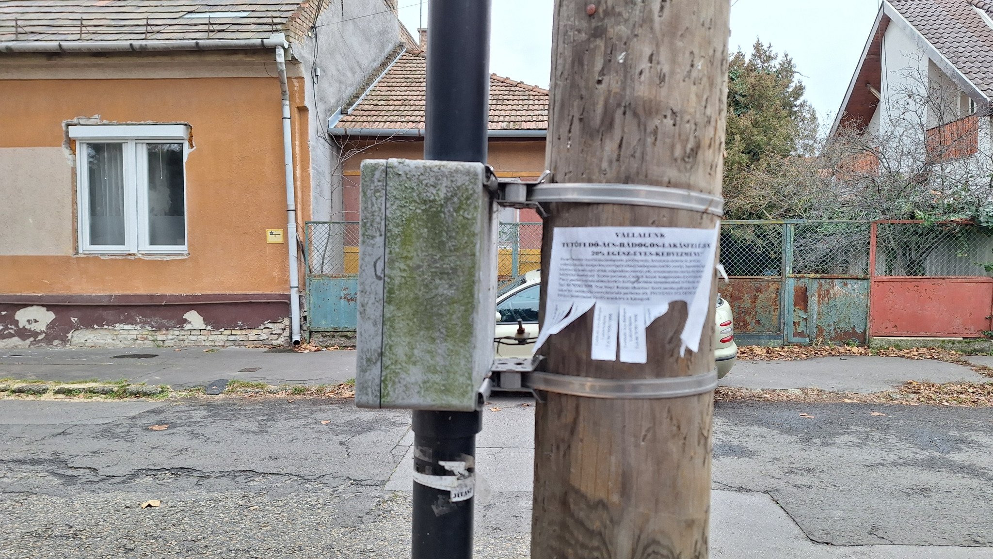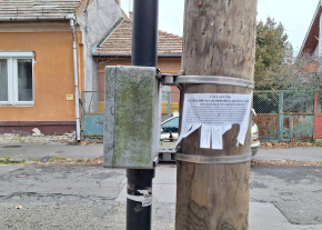 A Vécsey utca 89. előtti Telekomos oszlopon nyitva van a kapcsolódoboz ajtaja.