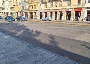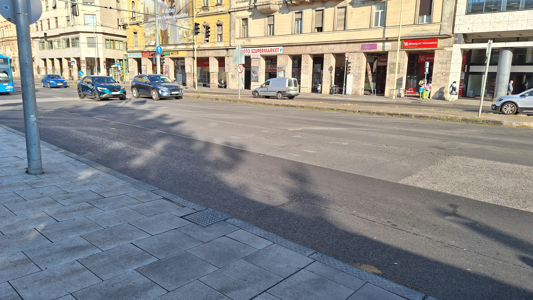 A Blaha Lujza téren a 7-es busz megállójánál van egy kátyú.
