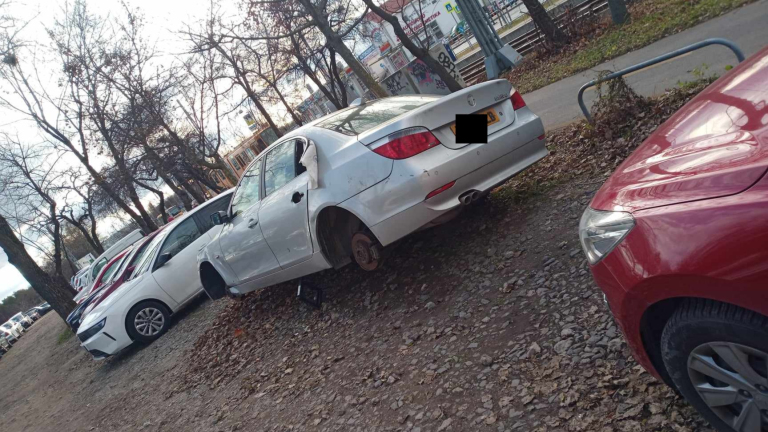 A X. Ker. Fehér út mellett a Gyakorló út és a Fehér úti ipari park közötti fás parkoló részen van az üzemképtelen jármű.