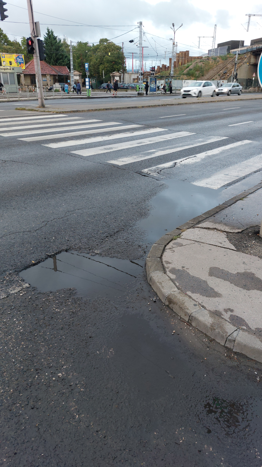 A gyalogosátkelő-hely előtt, az úttesten esőzés alkalmával nagy mennyiségű víz gyűlik fel rendszeresen. Ebbe a hatalmas tócsába az autók min. 50 km/órával hajtanak bele és méterekre fröccskölik a sáros, kavicsdarabos vizet. Mivel a Soroksári úton több busz is megáll, sokan nyomorognak ilyenkor a kevés helyen, ami még védett lehet, várvs, hogy át tudjnak kellni az út túloldalára.