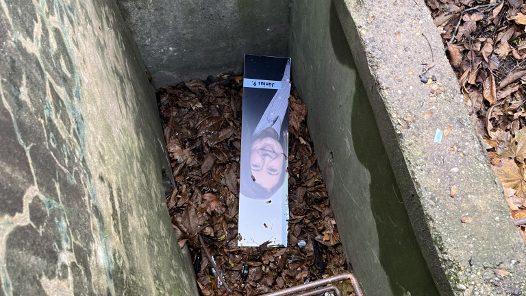 A vízelvezető árokban választási plakát és mindenféle szemét van. Kérem takarítsák ki.