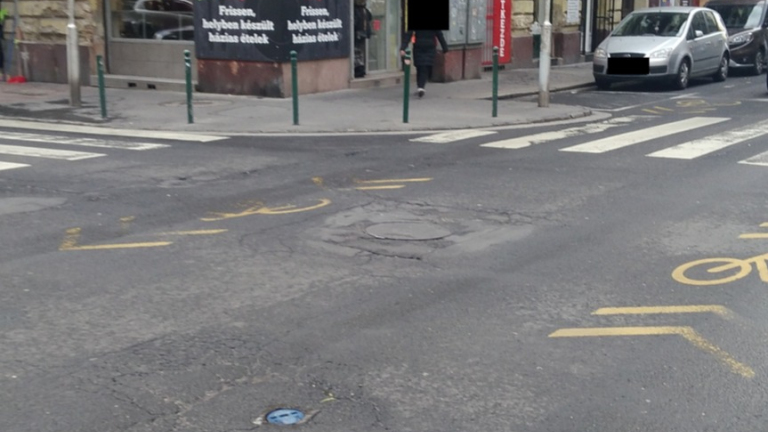 Rossz állapotú aszfalt az aknák körül - Király utca