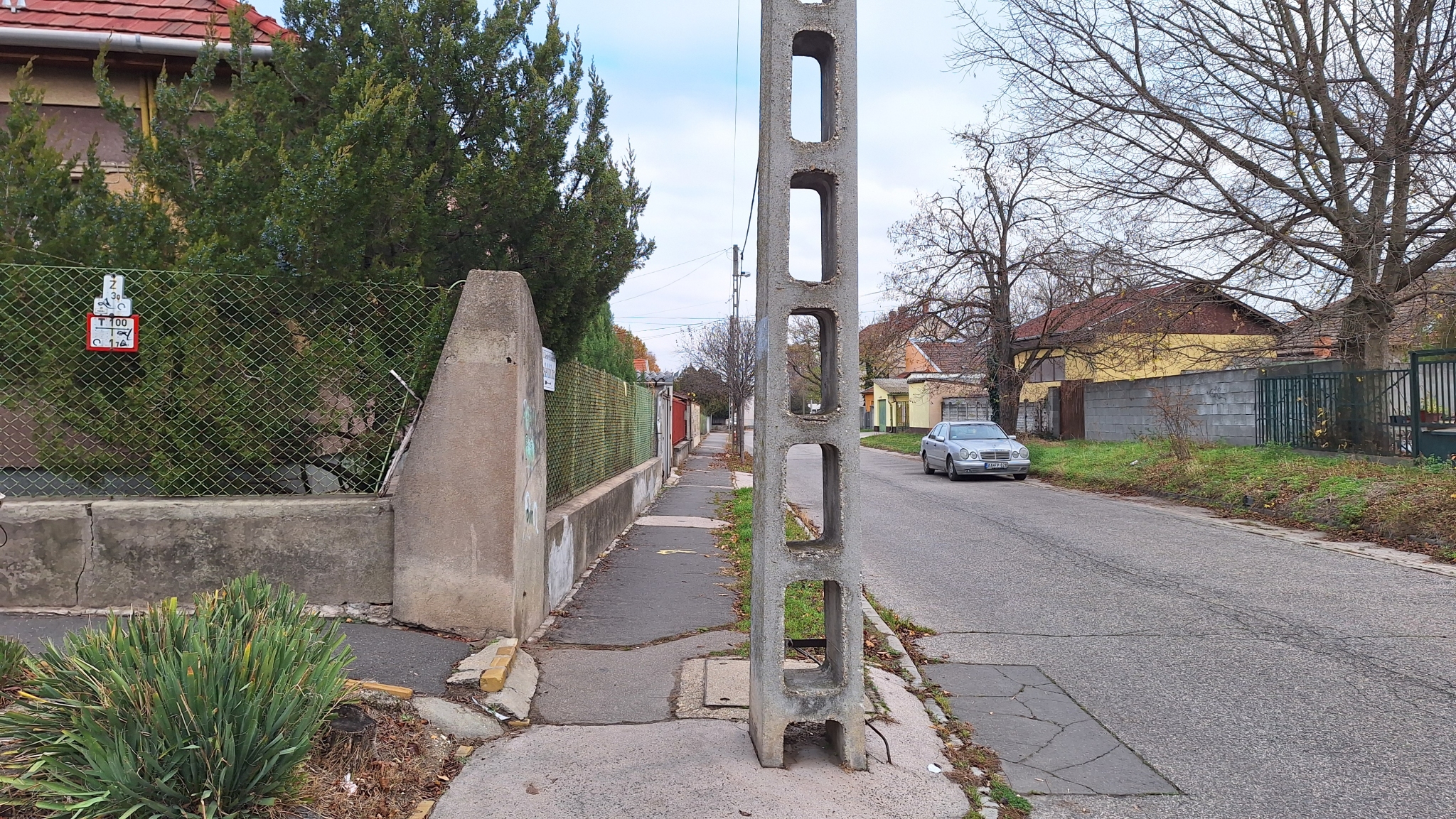 A Székelyhíd és Berzsenyi Dániel utca sarkán álló villanyoszlopról a földre lóg a vezeték.