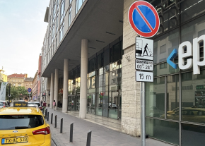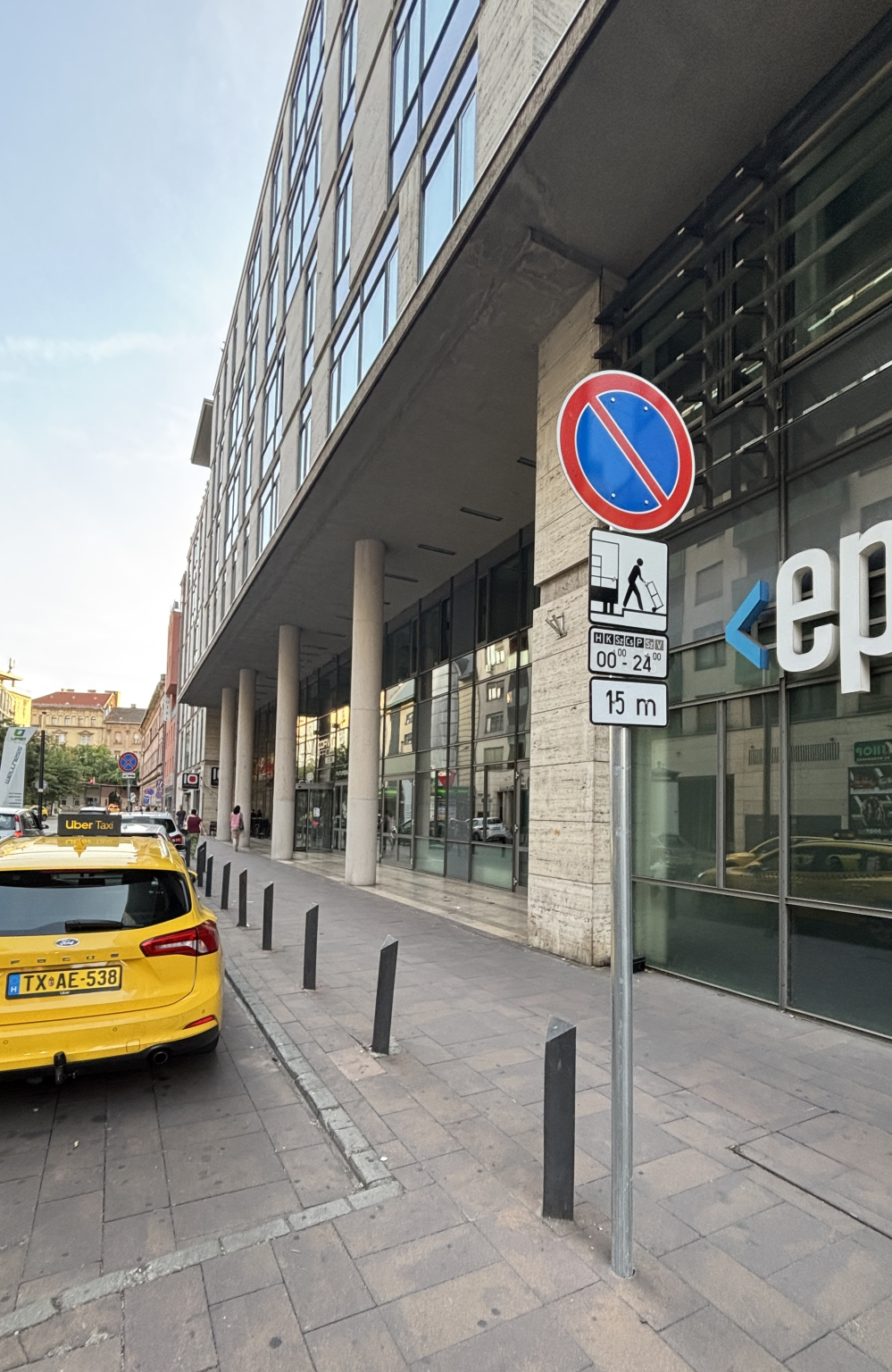 A VIII. Ker. Futó utca 43-45 számnál a Corvin Pláza melletti rakodási terület táblátnak valaki neki tolatot.