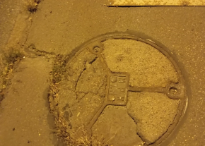 Kérem az illetékest, hogy a képen látható csatorna-fedlap aszfaltozását pótolni szíveskedjenek! Városmajor utca/Csaba utca sarok