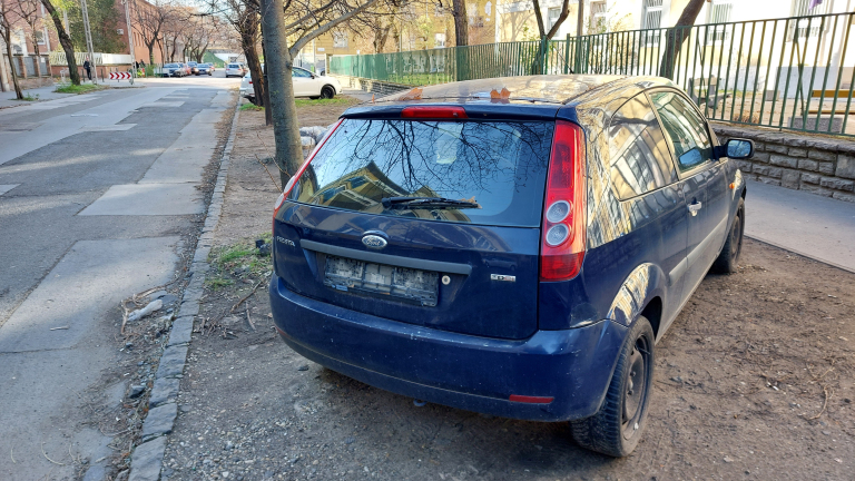 A Tábornok utcában, szabálytalan helyen áll rendszám nélkül ez a Ford.