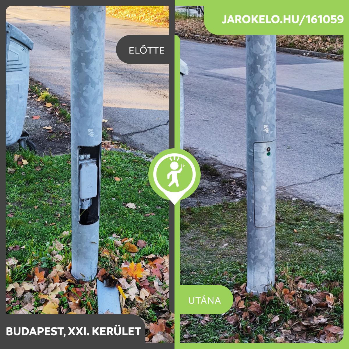 Köszönjük a bejelentését. Tájékoztatjuk, hogy a jelzett címen a hiba kijavításra került.