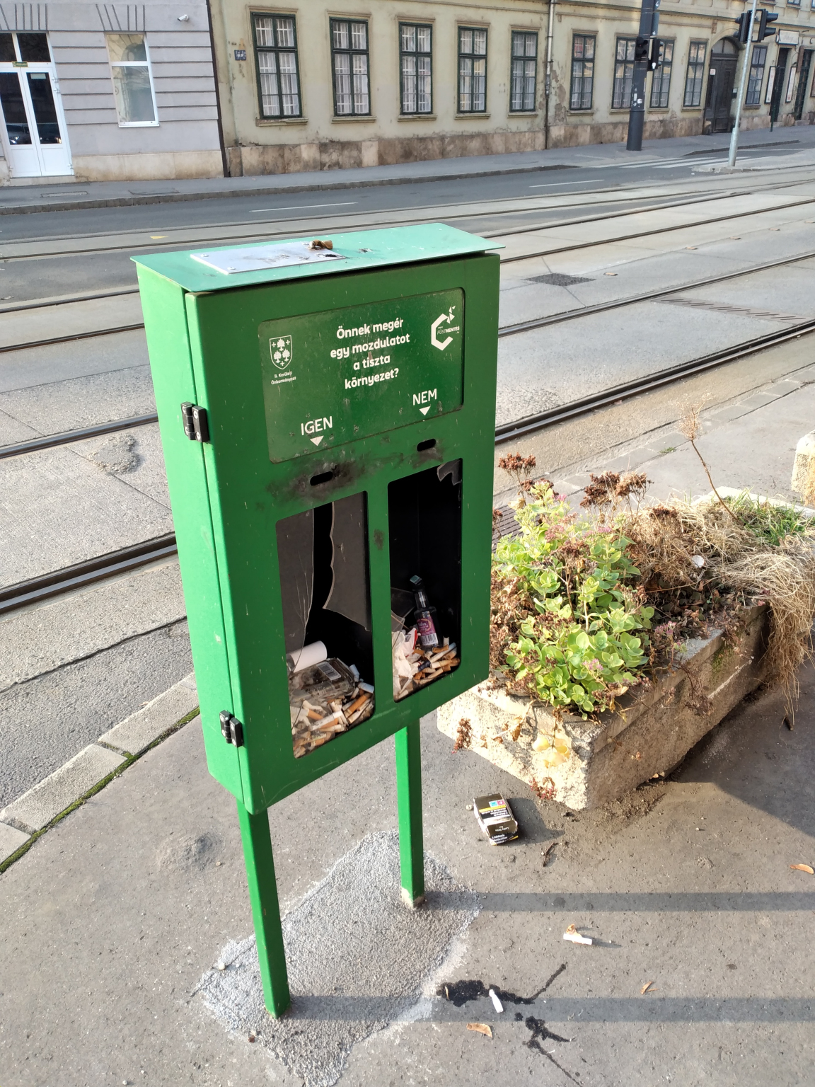 Köszönjük jelzését, a bejelentésben szereplő csikkgyűjtőt kollégáink eltávolították, az új elhelyezéséig szíves türelmét kérjük.