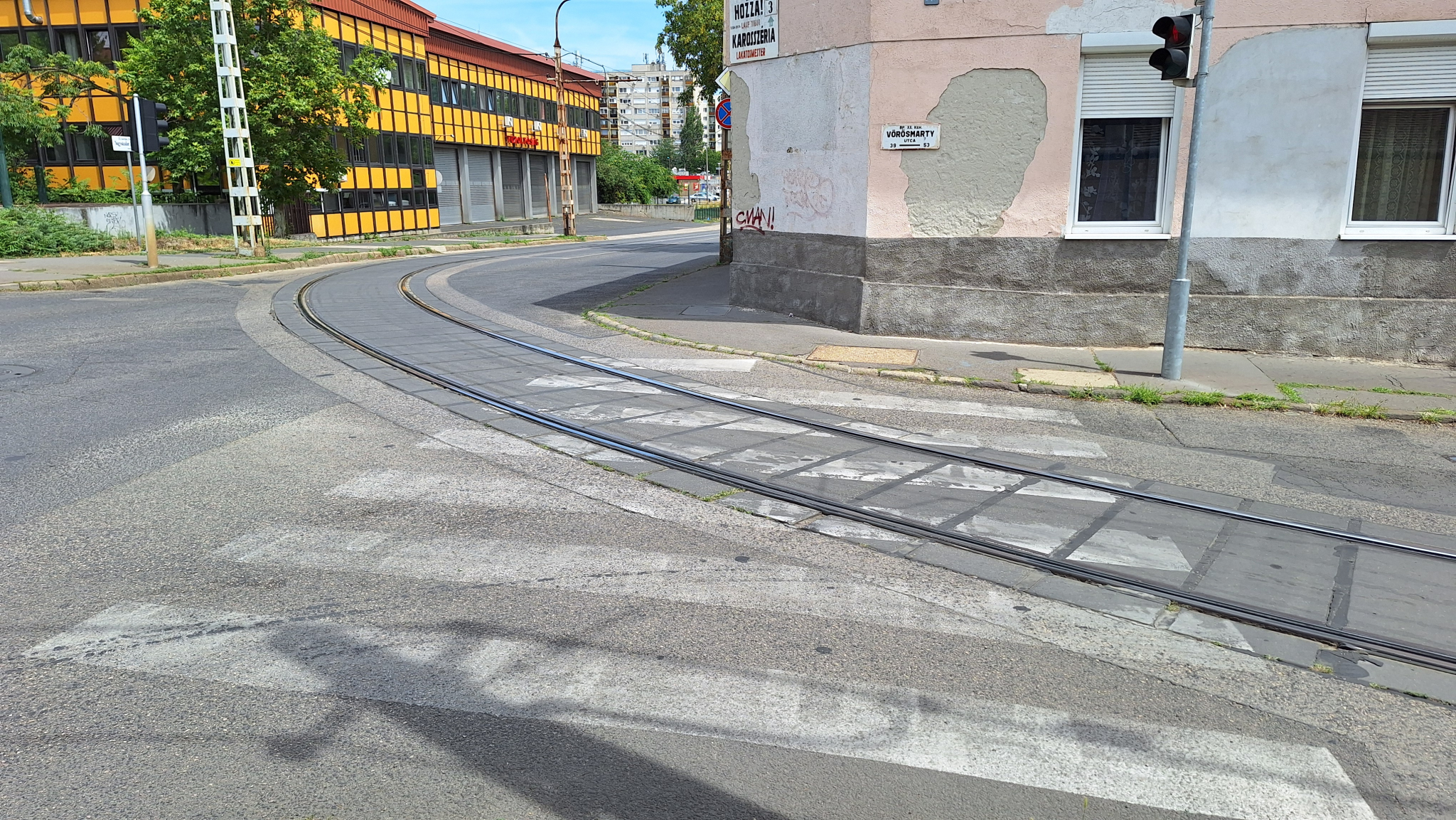 A Nagysándor József és Vörösmarty utca sarkán szinte teljesen lekopott a zebra felfestése.