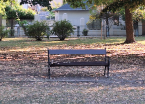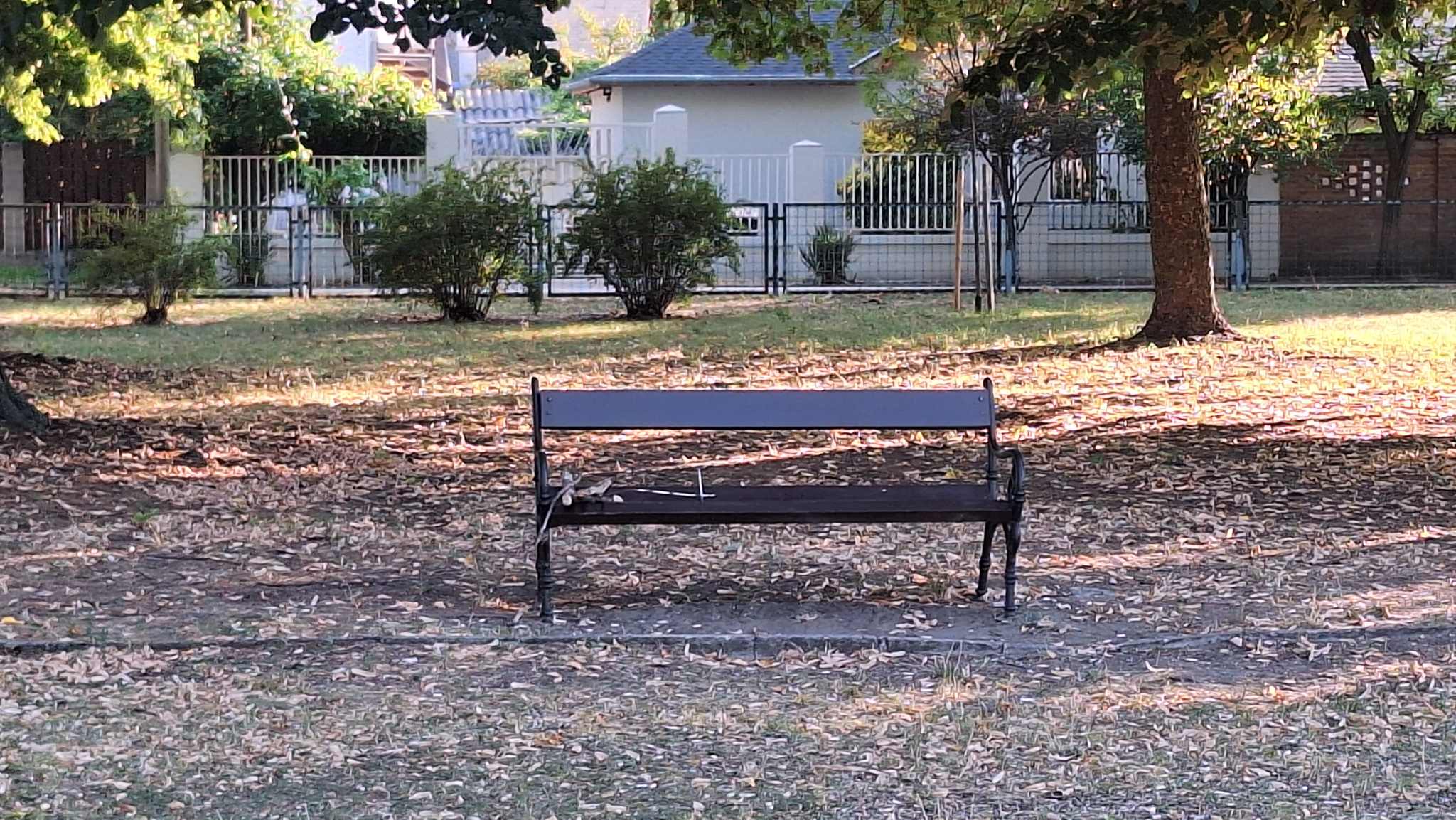 A XX. kerületi Vörömarty téren leszakadt az egyik pad egy léce.