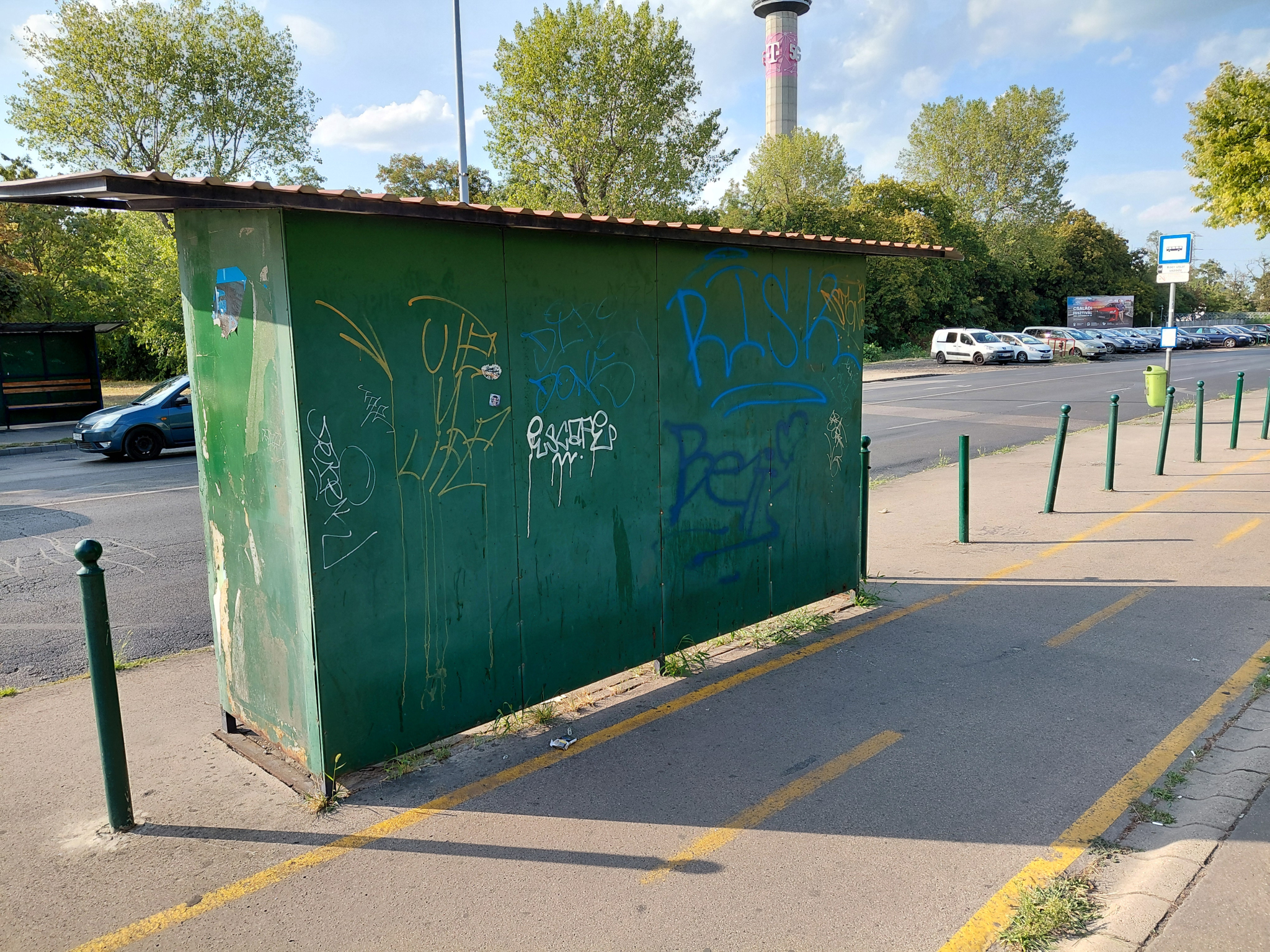 A Kőér utcában, a Vak Bottyán utca sarkánál, az irodaház előtt a 99-es busz megállója erősen lepusztult állapotban van. A hátlap fémlemeze alul levált, ráadásul az egész megálló tele van graffizizve.