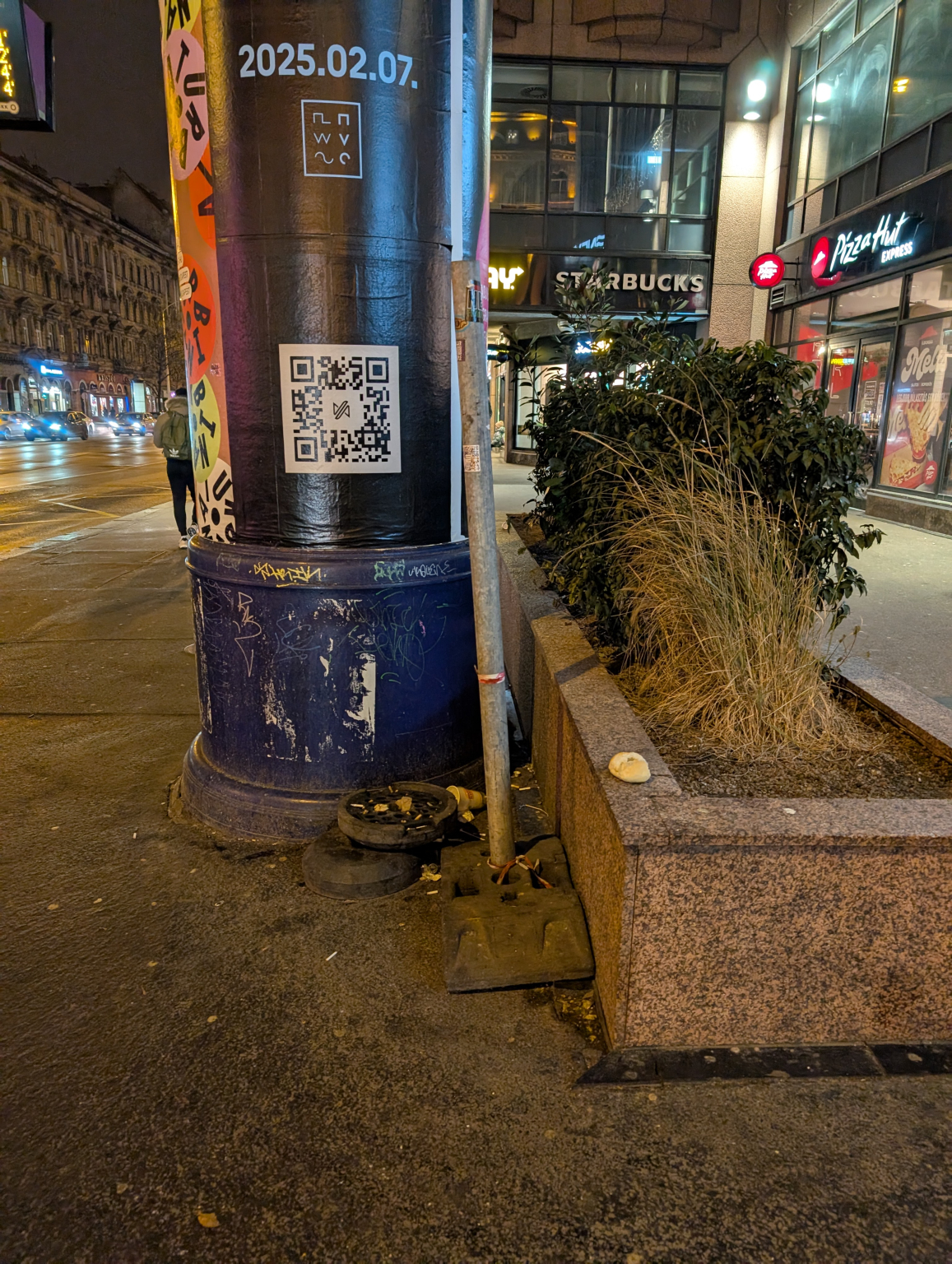 A Starbucks előtti területen több kordon talpa, vascső, rácsdarab van szétdobálva a növénykazetta tövében illetve az árkád alatt a Tesco felé haladva.