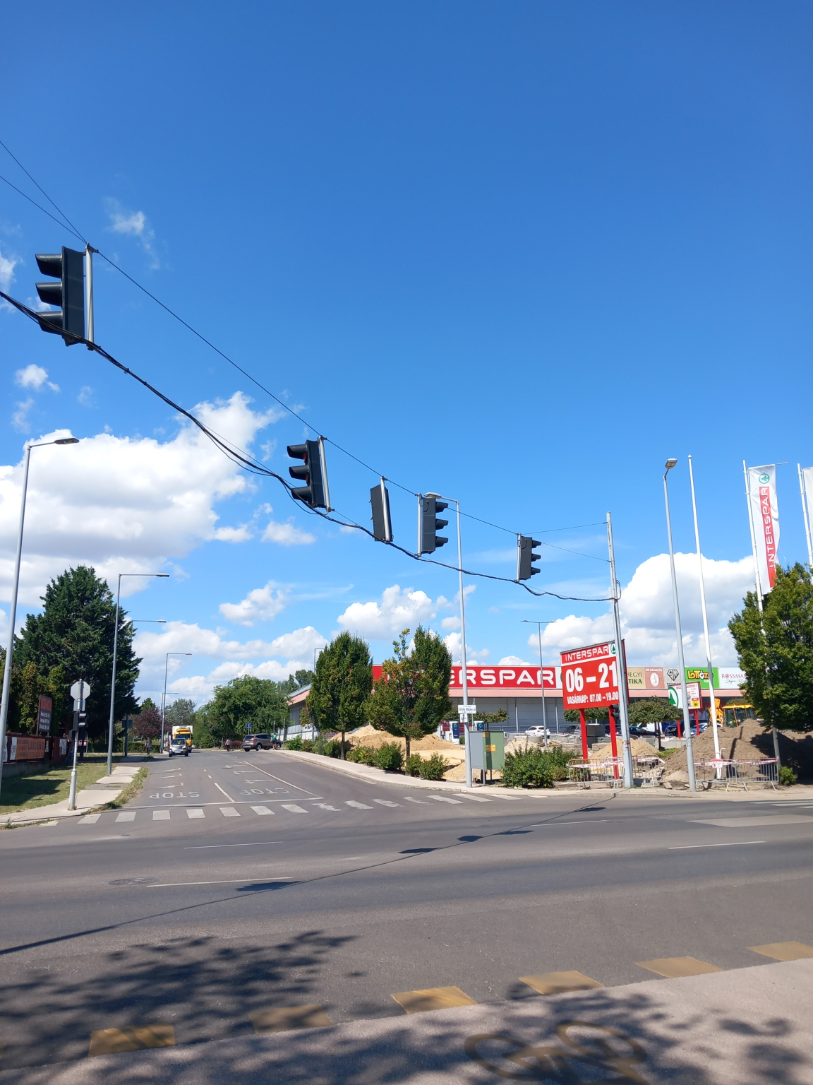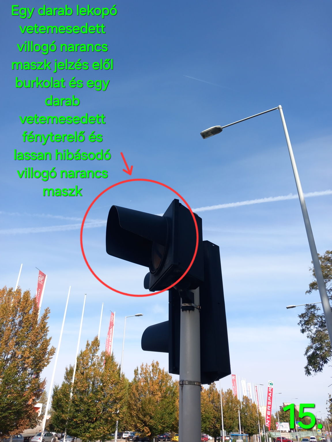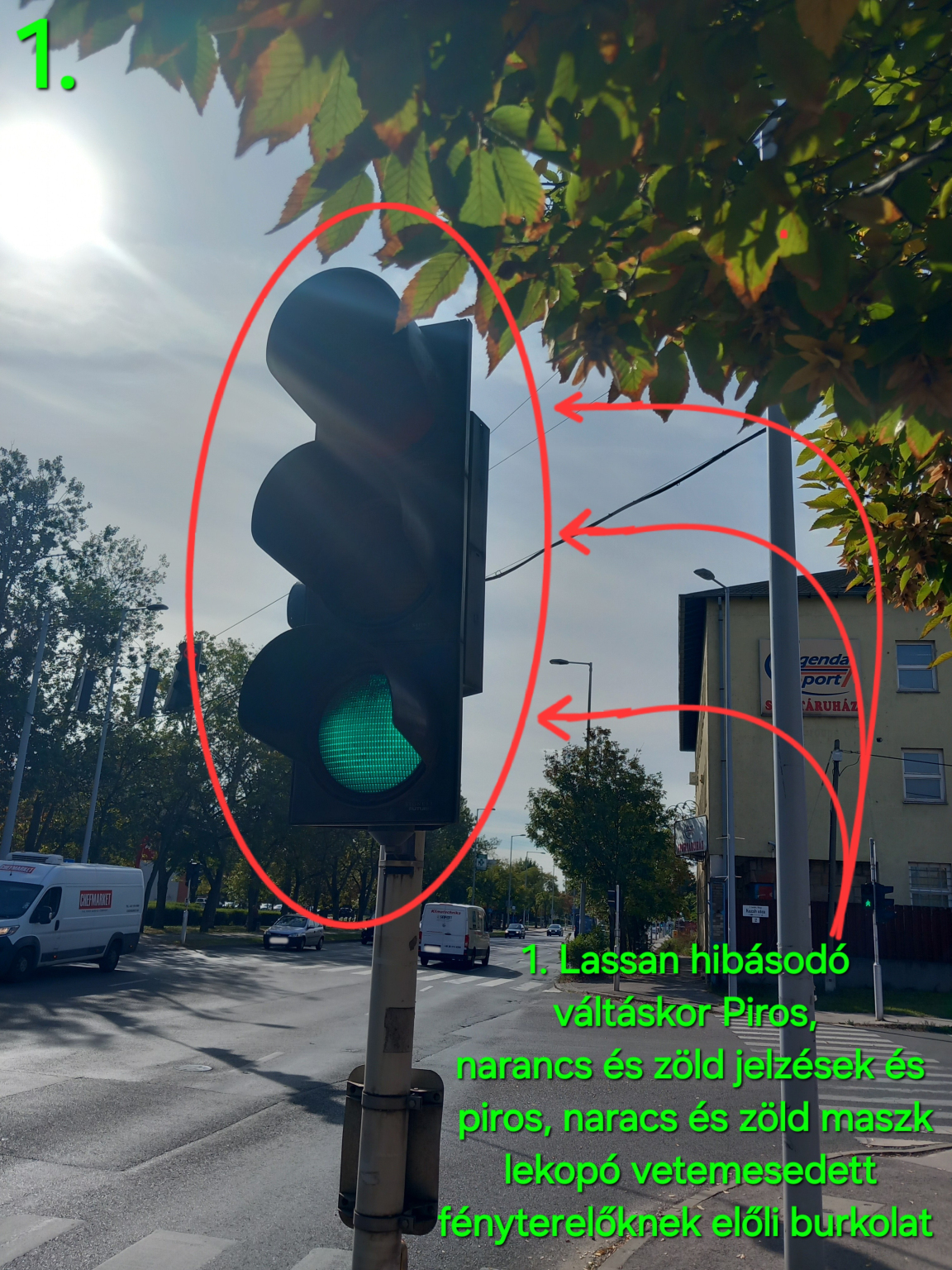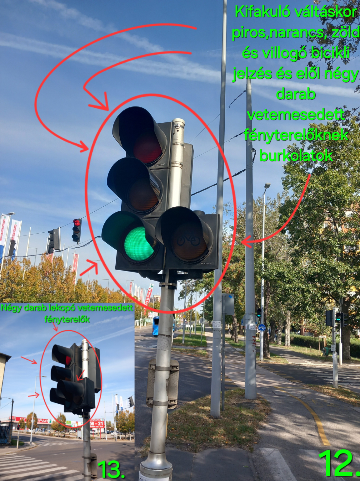 A Sibrik Miklós úti csomópontnál pirossal jelölve a jelzőlámpáknak az első felsővezetékek néhány helyeken le lógnak, ki vannak kötődve az első felsővezetékek helyükről, illetve az első második és harmadik helyeken pirossal jelölve jelzőlámpának felsővezetékeknek a függesztő akasztók lassan rozsdásodások láthatók köztük kissé van amelyik baloldalt ferdék a felsővezetékek függesztő akasztók, szerencsére nincs balesetveszély viszont lassan mértékben jobban le lóghat felsővezetékek néhány helyeken a helyükről