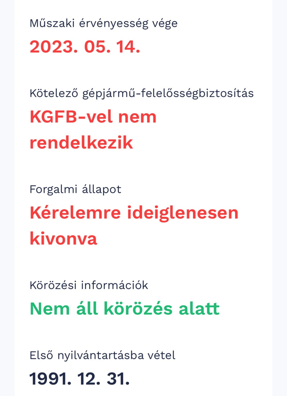 Kérem szállítsák el a járművet, mivel szabálytalanul áll a Tesco parkolóban és műszakija sincsen. Köszönöm szépen!