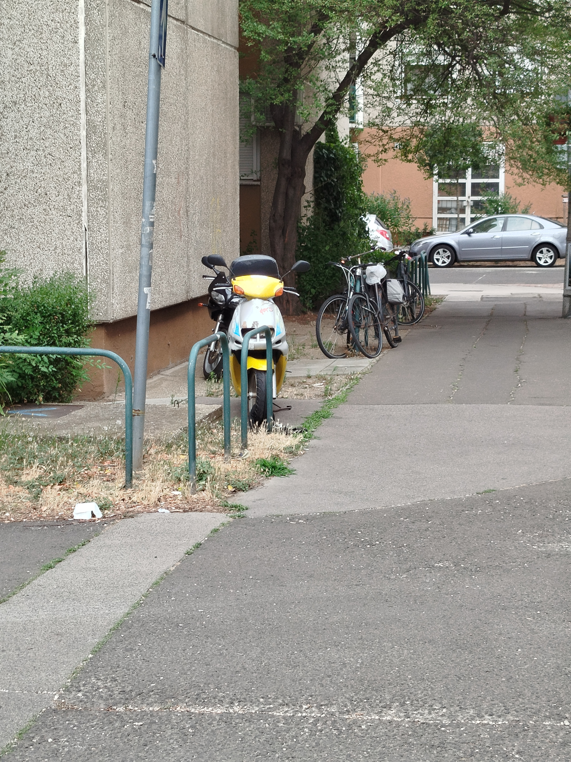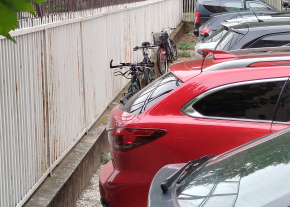 A Pannónia utcai lakótelepi házak (110-114 stb..) Berzsenyi Dániel Gimnázium felöli oldalán rendszeres az ad hoc kerékpár parkoltatás. A gimnázium kerítéséhez vannak többnyire láncolva, néha a parkoló autókat is zavarva (lásd google kép), néha meg mint ma egyszerűen rajta lógnak a kerítésen. Jó lenne itt kiépített kerékpártámasz, ahogyan olyan sok helyen van a XIII. kerületben, melyért köszönet az önkormányzatnak.
